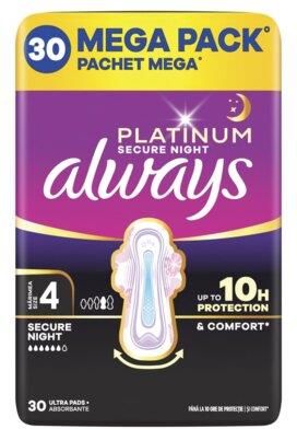 Always Podpaski Platinum Secure Night Rozmiar 4 30szt. Barwice