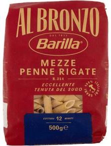 Barilla Al Bronzo Mezze Penne Rigate n.354 500g włoski makaron rurki Mezze Penne Rigate zostały stworzone z myślą o tym, aby podawać je z różnymi dodatkami. Ich intensywna chropowatość, będąca efektem specjalnej metody obróbki surowego brązu, tworzy nieciągłą powierzchnię idealną do zbierania …