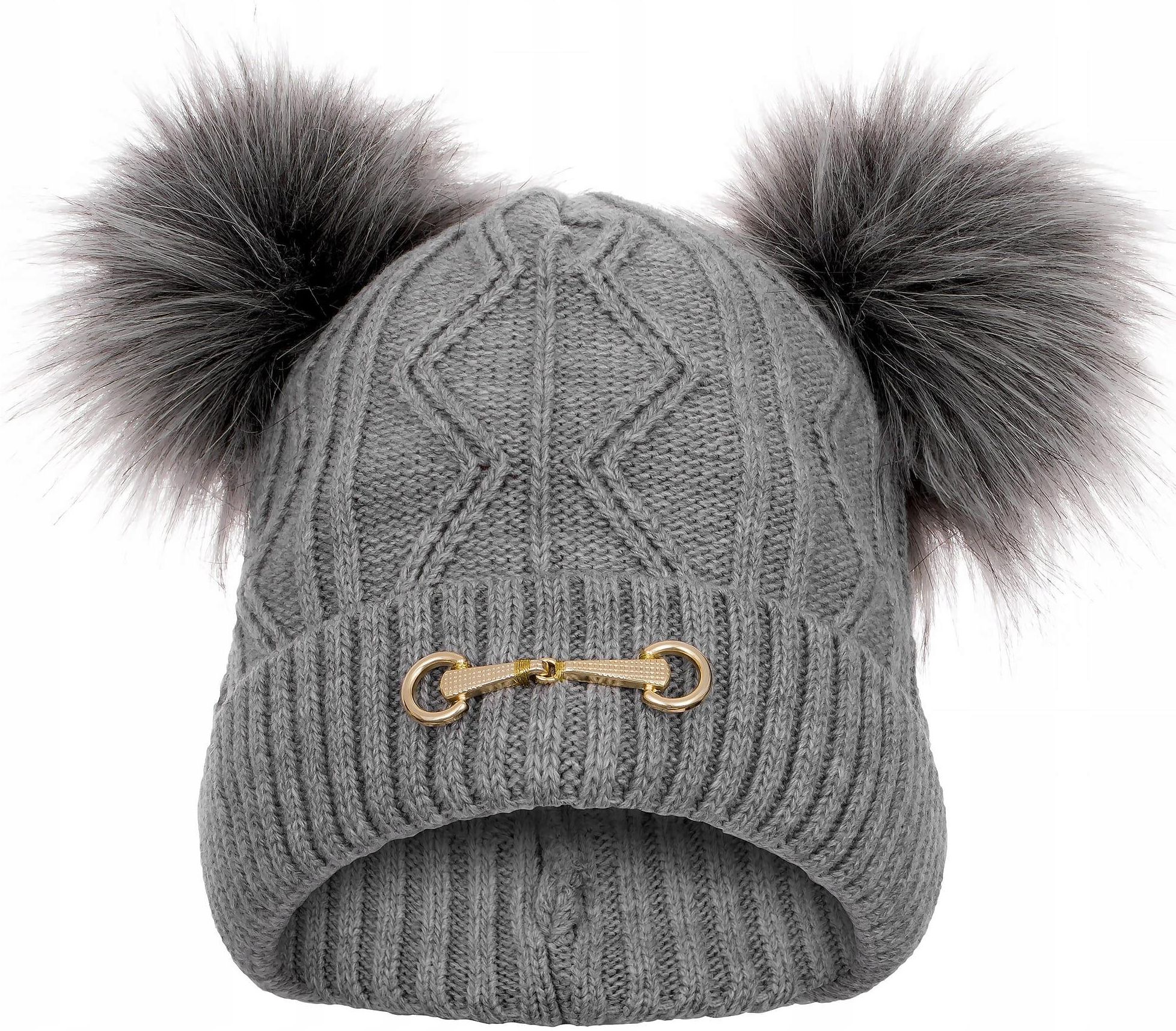 Czapka zimowa damska Equestrian Queen Ayla 24AW z 2 pomponami jasnoszara Barwice