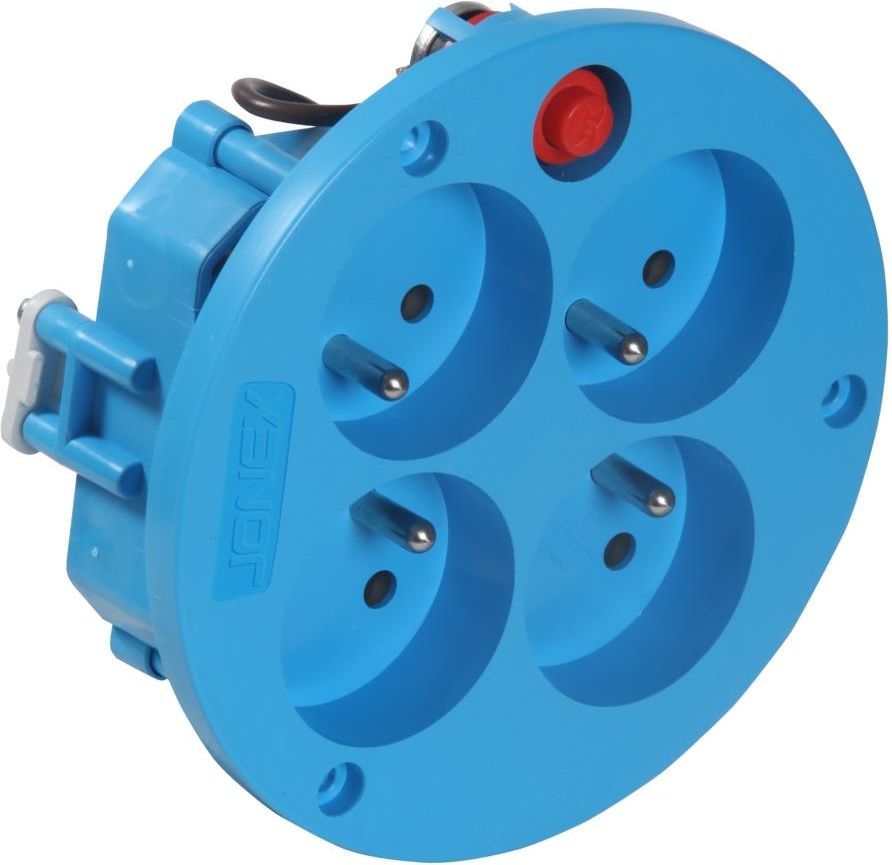 Gniazdo przedłużacza bębnowego poczwórne z uziemieniem i zabezpieczeniem termicznym w kolorze niebieskim. Gniazdo czterokrotne z uziemieniem wyposażone w zabezpieczenie termiczne chroniące przed przegrzaniem przedłużacza. Gniazdo przeznaczone do montażu w bębnach przedłużaczy. Model: GN-B2 / niebieski Parametry gniazda: Gniazdo czterokrotne z uziemieniem (2p+Z) Zabezpieczenie termiczne Napięcie maksymalne: 250V Obciążenie maksymalne: 16A (3680W) Stopień ochrony w oferowanym przedłużaczu to IP20. Produkt polskiej produkcji. Producentem produktu jest firma Jonex.