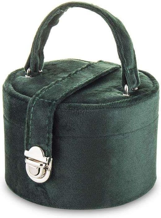 SZKATUŁKA WELUROWA OKRĄGŁA ZIELONA Szkatułka okrągła na biżuterię i drobiazgi w kolorze zielonym. Wykonana z bardzo dobrej jakości weluru, z dbałością o szczegóły. Wnętrze wyściela tkanina w kolorze kremowym. Wyposażona jest w lusterko, posiada miejsce na pierścionki i kolczyki. To także świetna ozdoba, która prezentuję się dobrze w wielu aranżacjach. Wymiary: Długość: 11,5 cm Wysokość: 8 cm W AGDmickiewicza stawiamy na najwyższy poziom zadowolenia Klientów, wysoką jakość produktów oraz możliwie najszerszą ofertę, aby zaspokoić Twoje wszystkie kuchenne potrzeby. W naszej ofercie znajdziesz elementy wyposażenia kuchni takie jak zastawa stołowa, sztućce, garniki, patelnie, przybory kuchenne, czajniki i wiele innych. Towar zamówiony do godz. 11.00 wysyłamy tego samego dnia.