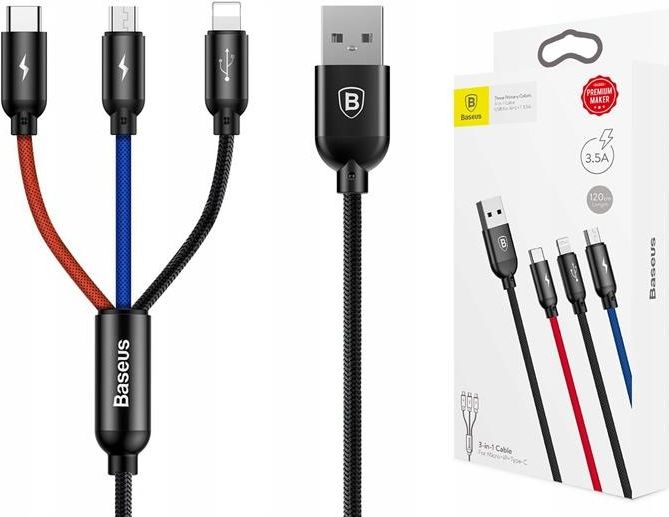 Baseus Kabel Usb 3W1 Usb-C / Lightning / Micro 3A Będzin