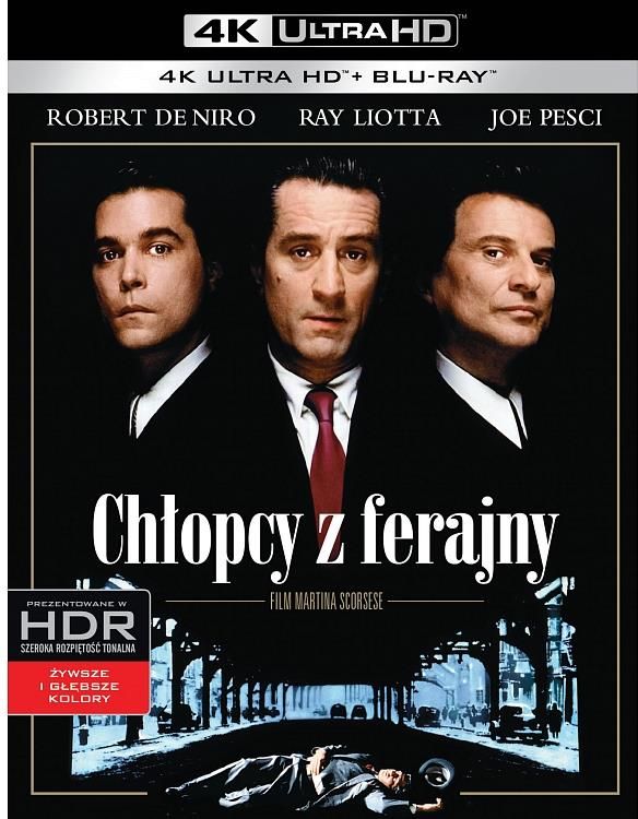 Opis filmu: Kilkunastoletni Henry, zafascynowany lokalną mafią i jej potęgą, dostaje się pod opiekę szanowanego w kręgach mafijnych gangstera Jimmy'ego Conwaya (Robert De Niro). Henry chce być taki jak Jimmy, pragnie mieć pieniądze, szacunek i przyjaciół. Do organizacji zostaje również przyjęty inny młody chłopak, Tommy DeVito. Obaj z łatwością uczą się nowych obowiązków i panujących w mafii reguł. Coraz bardziej też przyzwyczajają się do przemocy, okrucieństwa i ogromnych pieniędzy zdobywanych na drodze przestępstwa. Obsada: Robert De Niro - James "Jimmy" Conway Ray Liotta - Henry Hill Joe Pesci - Tommy DeVito Lorraine Bracco - Karen Hill Paul Sorvino - Paul "Paulie" Cicero Samuel L. Jackson - Stacks Edwards Tony Darrow - Sonny Bunz Mike Starr - Frenchy Dźwięk (4K Ultra HD Blu-ray): DTS-HD Master Audio 5.1 angielski Dolby Digital 5.1 rosyjski Dolby Digital 2.0 włoski Dolby Digital 2.0 polski Dolby Digital 2.0 francuski Dolby Digital 2.0 niemiecki Dolby Digital 2.0 hiszpański Dolby Digital 2.0 czeski Dolby Digital 2.0 węgierski Dolby Digital 2.0 tajski Dolby Digital 1.0 portugalski Dolby Digital 1.0 turecki Napisy (4K Ultra HD Blu-ray): polskie, włoskie, francuskie, niemieckie, hiszpańskie, portugalskie, szwedzkie, norweskie, fińskie, holenderskie, duńskie, czeskie, rosyjskie, tureckie, arabskie, koreańskie, hebrajskie, chińskie. Dźwięk (Blu-ray): Dolby Atmos 5.1 angielski Dolby Digital 5.1 włoski Dolby Digital 5.1 angielski Dolby Digital 5.1 francuski Dolby Digital 5.1 niemiecki Dolby Digital 5.1 hiszpański Napisy (Blu-ray): włoskie, francuskie, niemieckie, hiszpańskie, portugalskie, holenderskie, fińskie, duńskie, norweskie, szwedzkie, chińskie, koreańskie. Czas trwania: 145 minut Format: 1.85:1 Dodatki: Two Commentaries: Cast and Crew and Cop and Crook Behind the Scenes Made Man: The Goodfellas Legacy The Workaday Gangster Paper Is Cheaper Than Film Theatrical Trailer Polski lektor, napisy dostępne wyłącznie na płycie 4K Ultra HD