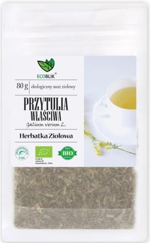 ECOBLIK Przytulia właściwa 80g ECOBLIK Przytulia właściwa 80g to ekologiczny produkt, który zasługuje na szczególną uwagę ze względu na swoje dobroczynne właściwości oraz łatwość zastosowania w codziennych rytuałach. Zioła i herbaty lecznicze od wieków zajmują szczególne miejsce w kulturach na całym świecie, wspierając naturalne procesy w organizmie. Odkryj bogactwo ziół, które wzbogacają codzienną dietę i przyczyniają się do poprawy zdrowia oraz samopoczucia. Skład produktu W składzie tego jednoskładnikowego produktu znajduje się w 100% ekologiczne ziele przytulii (Galium verum L.). Roślina ta występuje na trawiaste tereny Europy oraz Zachodniej Azji, gdzie odnajduje idealne warunki do wzrostu. Ekologiczny charakter składników jest istotny dla osób poszukujących naturalnych rozwiązań zdrowotnych, wolnych od chemicznych dodatków. Zioło przytulii znane jest z wielu korzystnych właściwości, które mogą być wykorzystywane w domowych recepturach. Opis działania Zioło przytulii wykazuje szereg korzystnych właściwości zdrowotnych. W medycynie ludowej znalazło zastosowanie w wspomaganiu procesów detoksykacji organizmu oraz w działaniach napotnych. Pomaga w leczeniu stanów zapalnych układu moczowego oraz działa moczopędnie, co przyczynia się do eliminacji obrzęków i cellulitu. Roślina ta jest także ceniona za wsparcie układów krwionośnego oraz limfatycznego, uznawana jest za pomocną w oczyszczaniu krwi, poprawie krążenia oraz profilaktyce zakrzepicy. Dodatkowo stosuje się ją w leczeniu żylaków, prostaty i hemoroidów, co czyni ją cennym wsparciem w codziennej pielęgnacji zdrowia. Kluczowe właściwości przytulii właściwej ECOBLIK Przytulia właściwa ma wiele korzystnych właściwości, które warto poznać: wspomaga procesy detoksykacji organizmu przez działanie napotne, działa moczopędnie, co sprzyja eliminacji obrzęków, wspiera leczenie stanów zapalnych układu moczowego, oczyszcza krew oraz wspomaga krążenie, zmniejszając ryzyko zakrzepicy, pomaga w leczeniu żylaków oraz hemoroidów, wspiera układ limfatyczny, przyczyniając się do lepszego funkcjonowania organizmu. Opakowanie ECOBLIK Przytulia właściwa dostępna jest w praktycznym opakowaniu o wadze 80 g. Liście zioła zostały starannie zebrane i zapakowane w sposób, który zapewnia ich świeżość oraz zachowanie wartości odżywczych. Odpowiednie przechowywanie w suchym i chłodnym miejscu sprawia, że produkt długo zachowuje swoje właściwości. Dzięki wygodnej formie, zioło jest łatwe do użycia w codziennym życiu. Właściwości smakowe Herbata z przytulii charakteryzuje się delikatnym, lekko ziołowym smakiem oraz subtelnym aromatem. Doskonale nadaje się do picia samodzielnie lub w połączeniu z innymi ziołami i owocami, co pozwala na tworzenie różnorodnych kompozycji smakowych. Przygotowanie naparu z tego zioła jest szybkie i proste – wystarczy zalać 1 łyżeczkę ziół szklanką gorącej wody i parzyć pod przykryciem przez 5-10 minut, aby cieszyć się jego właściwościami. Odkryj wyjątkowe zalety tego zioła i wprowadź je do swojej codziennej diety jako naturalny sposób na wsparcie zdrowia.