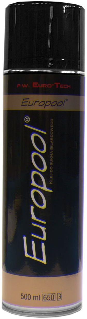 Klej do sukna bilardowego Europool® Spray 500ml Profesjonalnyklejdedykowany do klejenia sukna bilardowego, płótnaoraz innych materiałów tapicerskich do drewna i kamienia. Klej do sukna bilardowego Europool® zostałopracowanyna podstawie naszychwieloletnichdoświadczeń, w szczególnościzdobywanychprzy pracy ze stołami bilardowymi .Kleje dostępne na rynku były często słabej jakości, nieprzystosowane do tego typu materiałów. Nie wspominając już o bardzo wysokich cenach.Klej Europool® od początku był opracowywany by sprawdzić się przy stołach bilardowych, i co za tym idzie - przy innych pracach tapicerskich wymagających klejenia materiałów do drewna i kamienia.Po latach prób, uzyskaliśmy jakośc na jakiej nam zależało.Śmiało możemy powiedzieć - to najlepszy klej do sukna bilardowego na rynku !A w dodatku udało nam się utrzymać jego niewygórowaną cenę !Udowodnilismy, że można produkować w Polsce, i zachowywać przy tym dobrą cenę i wysoką jakość ! Sposób użycia: Puszkę przed użyciem dokładnie wstrząsnąć,Klej nanieść równomiernie na obu klejonych powierzchniach.Odzcekać co najmniej 2 minuty, a następnie klejone elementy złączyć ze sobą przed upłynięciem czasu otwartego (tj. 15 minut) i docisnąć.Przechowywać w suchych, przewiewnychm ocienionych miejscach.Chronić przed mrozem.Nie przechowywać w pobliżu żródeł ciepła. [[en]] {{Glue for billiard cloth Europool Spray 500ml}} Europool Glue Spray 500ml Billiard cloth is often applied with a glue (especially on 1 pc slate).That's why Euro-Tech company based on our experience of the production and work on billiard cloth developed this professional glue.Europool Glue Spray 500 ml is dedicated for billiard cloth, felt and others upholstery materials.This high quality glue is produced in Poland and it's one of the best glue on the market ! Usage directions:Shake can well, and apply evenly to both surfaces.Wait at least 2 minutes, and press surfaces together within 15 minutes.