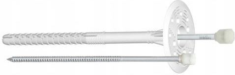 Kołki do styropianu i wełny mineralnej wbijane z trzpieniem stalowym gładkim z długą strefą rozpierania 10 x 220 (100szt) we wszystkich podłożach wg ETAG 014, w systemach ETICS Podstawowe parametry produktu Średnica [mm]: 10 Materiał: Polietylen / Stal + PA Typ łącznika: Wbijany Wymiary korpusu Lk x dk [mm]: 10 x 220 Średnica korpusu dk [mm]: 10 Długość korpusu Lk [mm]: 220 Materiał korpusu: Polietylen Materiał wkręta / śruby / trzpienia / gwoździa: Stal + PA Materiał trzpienia: Metal CECHY I KORZYŚCI Główka trzpienia metalowego pokryta tworzywem - Zmniejszona punktowa przewodność cieplna poprawia współczynnik przenikania ciepła całej przegrody, dodatkowo zabezpiecza trzpień przed korozją Innowacyjna konstrukcja koszulki - Duża ilość „kieszeni” klejowych na talerzu dociskowym zwiększa przyczepność zaprawy klejowej, Innowacyjna konstrukcja koszulki łącznika, większa sztywność talerza dociskowego Długa strefa rozporowa - Zapewnia pewne i stabilne mocowanie w podłożu PODŁOŻA UWAGA !!! NA INNYCH NASZYCH AUKCJACH MOŻNA DOKUPIĆ FREZ DO STYROPIANU (SŁUŻĄCY DO NAWIERCENIA OTWORU MONTAŻOWEGO POD ZAŚLEPKI STYROPIANOWE ZAPOBIEGĄJACE TWORZENIU SIE MOSTKÓW TERMICZNYCH) ZAŚLEPKI STYROPIANOWE POPRAWNY MONTAŻ