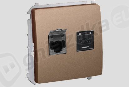 Gniazdo komputerowe RJ45 podwójne z przesłoną przeciwkurzową przeznaczone do podłączenia dwóch kabli sygnałowych kategorii 6 ekranowanych (FTP lub STP) typu skrętka (internet). Montaż do puszki na wkręty. Mocowanie przewodów bez użycia narzędzi lub opcjonalnie za pomocą narzędzia do zaciskania …