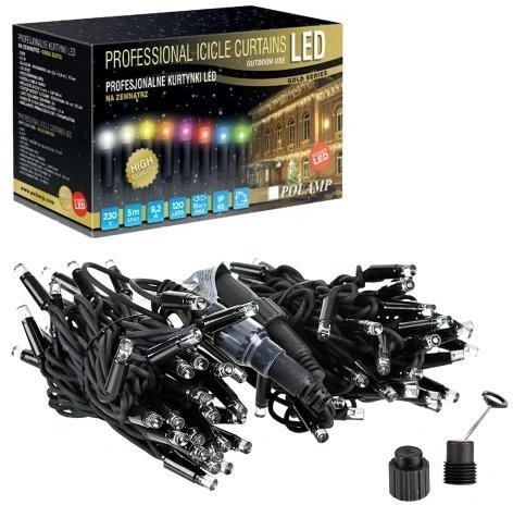 Kurtynka świetlna LED typu "SOPLE" z kolekcji złotej dedykowane do zastosowania zarówno wewnątrz jak i na zewnątrz. Lampki o łącznej długości 5m (2.5+2.5) zaopatrzone w 120 wysokiej jakości diod LED. Kurtyny świąteczne znajdują zastosowanie szczególnie do ozdabiania elewacji, okien, balkonów, …
