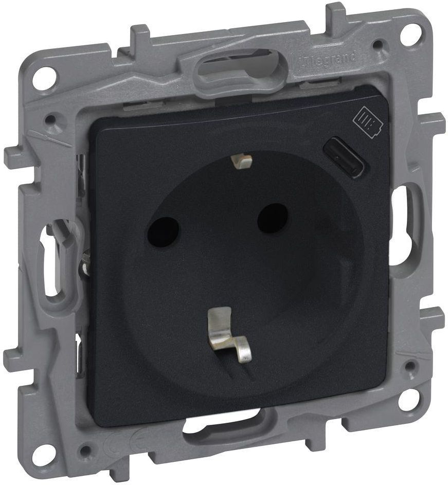 Legrand Gniazdo Pojedyncze Z/U Płaskie Z Przesłoną Styków + Usb Typ C Antracyt (762296) Będzin