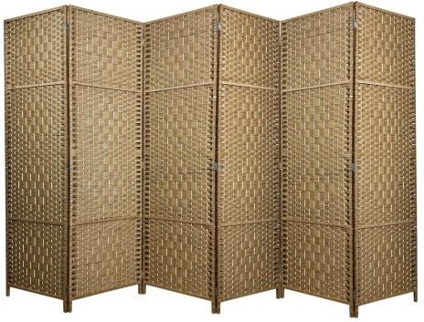 PARAWAN DWUSTRONNY DREWNIANY 6 - SKRZYDŁOWY JASNY BRĄZ (odcień miodowy) WYMIARY PARAWANU (wysokość x szerokość x grubość skrzydła): 180 x 300 x 2 cm SZEROKOŚĆ JEDNEGO ELEMENTU - 50 cm SKŁADANY NA 6 CZĘŚCI PARAWAN DWUSTRONNY PRZEDMIOT: NOWY OPIS: Piękny i naturalny parawan dekoracyjny o szerokich możliwościach wykorzystania. Świetnie sprawdzi się jako element oddzielający część pomieszczenia, którą chcemy wyodrębnić. Ten wspaniały parawan będzie oryginalną ozdobą, która wprowadzi do Państwa wnętrza orientalny akcent i sprawi, że salon czy sypialnia nabiorą nietuzinkowego wyglądu i blasku. Można wykorzystać go do stworzenia domowej przebieralni lub oddzielić część jadalną od wypoczynkowej w salonie. Parawan wykonany z taśmy wiklinowej (mieszanka wikliny i trawy morskiej) plecionej na drewnianym stelażu (drewno naturalne niemalowane). Parawan składa się z sześciu części połączonych ze sobą zawiasami. Parawany znajdą również zastosowanie w restauracji czy kawiarni, gdzie pozwolą gościom na zachowanie prywatności. Ze względu na niewielką wagę, będą stanowić łatwą do przesunięcia i elegancką przegrodę między stolikami. Produkt można także wykorzystać w hotelowym lobby, salonie piękności lub spa. Estetyczne i solidne wykonanie oraz szerokie możliwości zastosowania sprawiają, że parawany cieszą się ogromną popularnością. Możliwość łatwego i szybkiego przeniesienia go w inne miejsce sprawia, że zawsze posłuży nam dokładnie tam, gdzie jest akurat potrzebny.