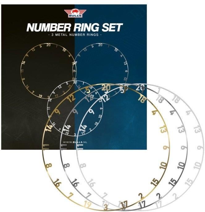 Pierścienie numeryczne do tarczy Bull's Metal Number Ring Set3szt.Przedstawiamy nasz zestaw metalowych pierścieni numerycznych do tarczy do darta – elegancki i trwały dodatek do Twojego zestawu do darta. Zestaw zawiera trzy wysokiej jakości metalowe pierścienie numeryczne w efektownym wykończeniu złotym, srebrnym i białym, zaprojektowane tak, aby podnieść zarówno wygląd, jak i wydajność Twojej tarczy. Wykonane z myślą o trwałości, te pierścienie są wykonane z materiałów najwyższej jakości, dzięki czemu wytrzymują trudy regularnej gry. Metaliczny połysk złotych i srebrnych pierścieni dodaje odrobinę wyrafinowania, a czysta biel oferuje nowoczesną, minimalistyczną estetykę. Idealny zarówno dla graczy okazjonalnych, jak i profesjonalistów, zestaw ten poprawia wygląd Twojej tarczy do darta, zapewniając jednocześnie łatwą czytelność cyfr. Niezależnie od tego, czy modernizujesz swój obecny zestaw, czy po prostu chcesz odświeżyć wygląd swojej tarczy, ten zestaw metalowych pierścieni numerycznych do darta to idealny wybór, który dopełni Twój styl. Uwaga: zestaw zawiera trzy oddzielne pierścienie w kolorze złotym, srebrnym i białym. [[en]]{{Bull's Metal Number Ring Set | 3pcs.}}