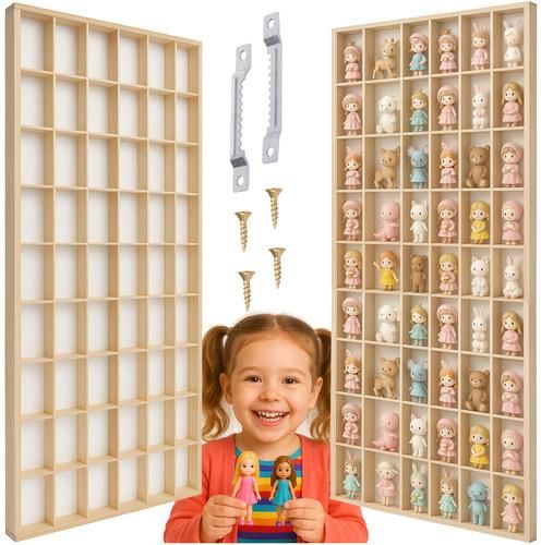 Półka drewniana na laleczki 10cm 54 przegródki KRUZZEL! pomieści całą kolekcję laleczek – regał został zaprojektowany z myślą o kolekcjonerach – 54 precyzyjnie wyciętych przegródek gwarantuje porządek i efektowną ekspozycję, każdy model ma swoje miejsce, co sprawia, że półka jest nie tylko …