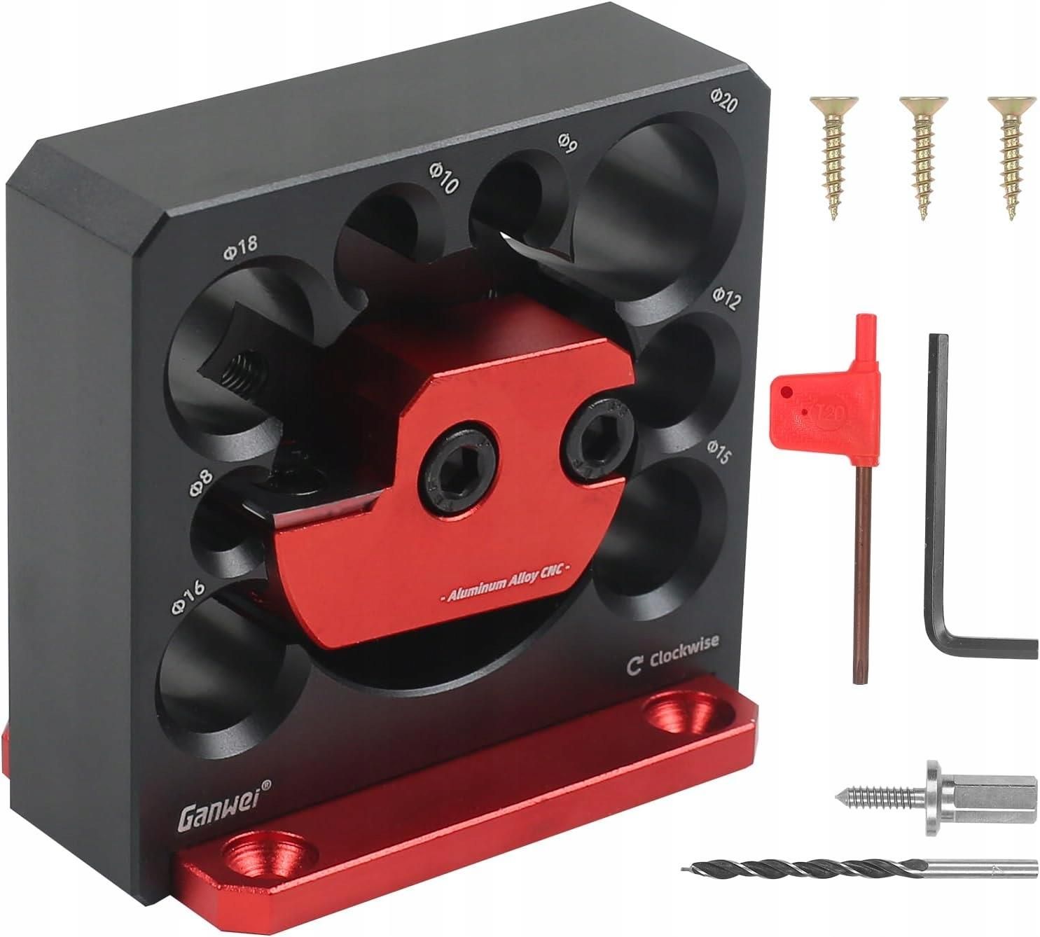 Regulowany przyrząd do produkcji kołków okrągłych Wykonanie: stop aluminium Średnice otworów: 8/9/10/12/15/16/18/20 mm Urządzenie można stosować z innymi narzędziami do obróbki drewna, takimi jak tokarki i frezarki, aby wytwarzać proste i precyzyjne okrągłe pręty i kołki o jednolitym rozmiarze i kształcie.