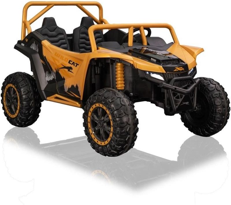 Szukasz zabawki, która nie zna kompromisów? Arctic Cat WILDCAT XX w ekskluzywnym złotym kolorze to potężna maszyna terenowa stworzona dla dzieci, które kochają przygodę. Dzięki konfiguracji 4 silników o łącznej mocy 800W i napięciu 24V, ten buggy pokona wzniesienia i nierówności, przy których inne pojazdy muszą zawrócić. Dlaczego warto wybrać Buggy Arctic Cat WILDCAT XX? 1. Niespotykana moc i wydajność Sercem pojazdu są cztery silniki o mocy 200W każdy. W połączeniu z wydajnym akumulatorem 24V7Ah, Arctic Cat oferuje dynamikę jazdy na najwyższym poziomie. To idealny wybór na trawę, piasek czy leśne ścieżki. 2. Komfort i luksusowe wykończenie Wnętrze Wildcat XX to klasa premium. Podwójne siedzenie z wentylowanej ekoskóry z 3-stopniową regulacją pozwala idealnie dopasować odległość do kierownicy. O płynność jazdy dbają duże, piankowe koła EVA oraz unikalne, regulowane i gwintowane zawieszenie tylne, które pozwala dostosować twardość amortyzacji do terenu. 3. Bezpieczeństwo pod pełną kontrolą Mimo ogromnej mocy, bezpieczeństwo pozostaje priorytetem: Pilot 2.4 GHz dla rodzica: Pozwala na przejęcie kontroli nad pojazdem lub natychmiastowe zatrzymanie przyciskiem STOP. Wolny Start: Eliminuje szarpanie podczas ruszania. Pasy bezpieczeństwa i blokada drzwi: Zapewniają stabilną pozycję dziecka podczas off-roadu. 4. Centrum rozrywki na pokładzie Nowoczesny panel audio z Bluetooth, wejściem USB, SD i AUX pozwala na odtwarzanie ulubionej muzyki podczas jazdy. Realistyczne światła LED (przód/tył) sprawiają, że pojazd prezentuje się zjawiskowo nawet po zmroku. W zestawie otrzymujesz: Pojazd Arctic Cat WILDCAT XX (Złoty) Pilot zdalnego sterowania 2.4 GHz Ładowarkę 24V Pokrowiec na pojazd Instrukcję montażu i zestaw narzędzi Specyfikacja Pojazd Buggy Arctic Cat WILDCAT XX Siniki 4x200W Akumulator 24V7Ah Pilot 2.4 GHz, 3 Prędkości, Przycisk bezpieczeństwa Stop, Koła Piankowe koła EVA, 37 x 14 cm - tył, 37 x 13 cm - przód, Amortyzatory 2 x tył - Tylne zawieszenie regulowane, gwintowane Biegi Wolny Start, Przód/Tył, 2 szybkości. Światła Światła LED, Przednie/tylne, Włącznik świateł, Wyposażenie Panel Audio MP3, SD AUX, USB, Wgrane melodyjki Bluetooth, Start Przycisk Otwierane Drzwi Tak + Blokada Siedzenie Czarna Wentylowana Ekoskóra, Siedzenie podwójne, 3-stopniowa regulacja siedziska, 25x31x32 cm x2, Wymiary Rozmiar Pojazdu Długość 136 cm, Szerokość 92 cm, Wysokość 82 cm, Waga Pojazdu 39 Kg Rozmiar Kartonu 133x80x48 cm Waga Kartonu 47 Kg Maksymalne Obciążenie 60 Kg Prześwit 23 cm Wyposażenie Dodatkowe Instrukcja + Zestaw Montażowy Ładowarka, Pilot, Pokrowiec