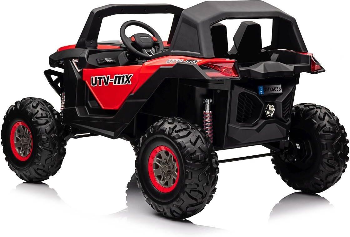Buggy UTV-MX 2000N – Elektryczny Buggy z Pełnym Wyposażeniem dla Dzieci | Bezpieczny, Wytrzymały, Pełen Funkcji Szukasz elektrycznego buggy’ego dla dzieci, który łączy wysoką wydajność, bezpieczeństwo i rozrywkę? UTV-MX 2000N to idealny wybór! Ten wysokiej klasy ride-on car oferuje niepowtarzalną jazdę dzięki mocnym silnikom, regulowanemu zawieszeniu, profesjonalnemu systemowi dźwiękowemu i innowacyjnym funkcjom sterowania. Idealny prezent dla małych poszukiwaczy przygód! Kluczowe Cechy Buggy UTV-MX 2000N – Dlaczego To Najlepszy Model? Podwójne Silniki 75W – Mocne i ciche napędy zapewniają płynną jazdę nawet na nierównym terenie. ✅ Profesjonalny Pilot R/C 2.4 GHz – 3 prędkości, przycisk STOP dla natychmiastowego zatrzymania oraz zdalna kontrola dla rodziców. ✅ Regulowane Amortyzatory – 2 przednie i 2 tylne, gwintowane zawieszenie dla komfortu nawet przy wysokich przeszkodach (prześwit 25 cm!). ✅ Podwójne Koła EVA 33x15 cm – Piankowe, trwałe i bezpieczne dla każdej podłoża. ✅ System Audio Premium – MP3, SD, radio FM, USB, AUX, wgrane melodyjki i dźwięki w kierownicy dla pełnej immersji. Dlaczego UTV-MX 2000N to Idealny Wybór dla Twojego Dziecka? Bezpieczeństwo na Pierwszym Miejscu Pasy bezpieczeństwa w sportowym, wentylowanej ekoskórze. Blokada drzwi i przycisk STOP na pilocie. Wskaźnik naładowania – brak niespodzianek podczas zabawy. Realistyczna Jazda i Design Otwierane drzwi, schowek z tyłu (45x15 cm) i światła LED (przednie, tylne, górne). Bagażnik – miejsce na ulubione zabawki! Start kluczykiem z odgłosami silnika – efekt kinowy!🔹 Wytrzymałość i Komfort Maksymalne obciążenie 50 kg – nadaje się dla dzieci do 10 roku życia. Wymiary pojazdu: 120 x 85 x 80 cm – duża przestrzeń dla komfortu. Waga 31 kg – stabilna konstrukcja, która nie przewróci się podczas driftu. Specyfikacja Techniczna – Szczegóły dla Demanding Parents Akumulator: 2 x 12V/7Ah (długa żywotność, ładowarka 1500mA w zestawie). Rozmiary kartonu: 124x92x43 cm (waga 38 kg – łatwy transport). Dodatkowe wyposażenie: Instrukcja montażu + zestaw narzędzi. Kabel Mini Jack, ładowarka i klucz startowy. Dla Kogo Przede Wszystkim Polecany Jest UTV-MX 2000N? Dla rodziców, którzy cenią bezpieczeństwo (pilot z funkcją STOP, pasy, blokada drzwi) i trwałość (regulowane zawieszenie, koła EVA). Dla dzieci, które chcą dynamicznej jazdy z realistycznym dźwiękiem, światłami i możliwością eksploracji terenu. Dla fanów off-roadu – dzięki prześwitu 25 cm i amortyzatorom UTV-MX radzi sobie z bajeczkami na trawie, piasku czy żwirze! Podsumowanie: Kup UTV-MX 2000N i Urozmaicz Zabawę Swojemu Dziecku! Buggy UTV-MX 2000N to nie tylko zabawka – to pojazd, który rozwija koordynację, wyobraźnię i poczucie niepodległości. Dzięki podwójnym silnikom 75W, regulowanemu zawieszeniu i profesjonalnemu systemowi audio, zapewnia niezapomniane wrażenia nawet najbardziej wymagającym kierowcom!