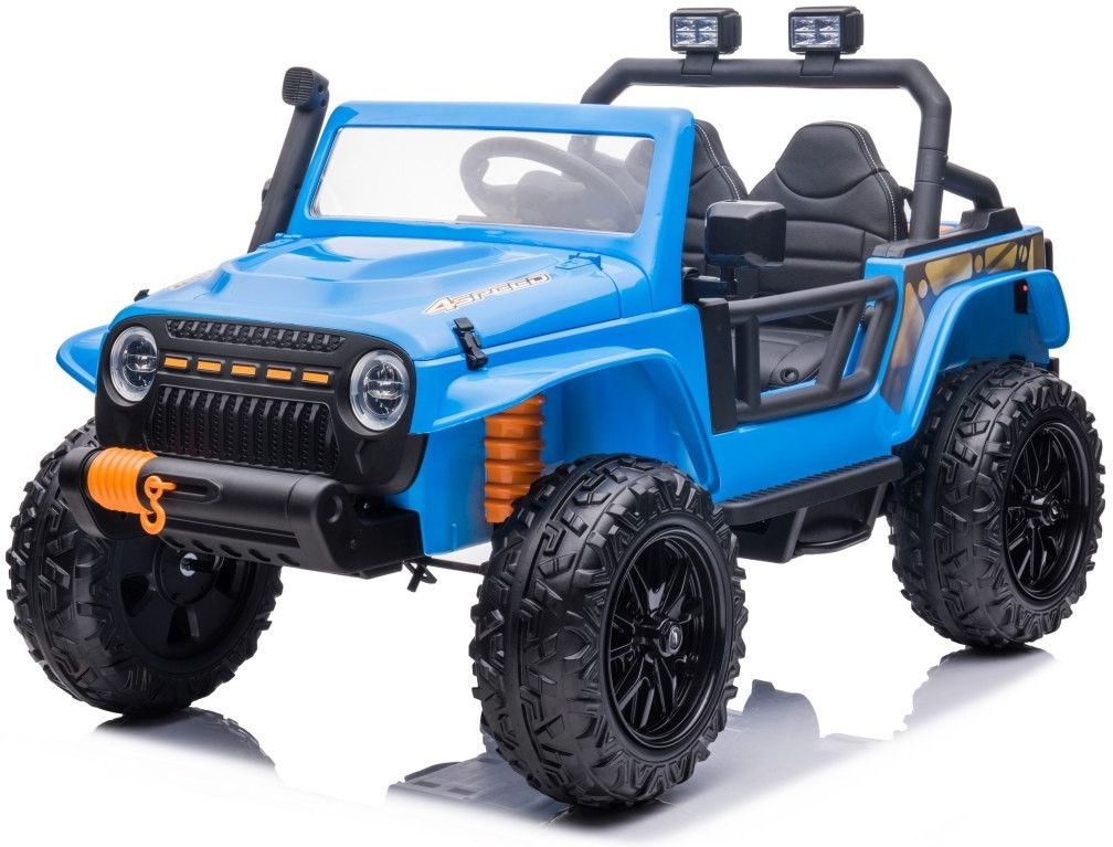 Jeep Monster 24V – Potężny Auto na Akumulator z Funkcją Jazdy z Rodzicem Szukasz zabawki, która poradzi sobie w każdym terenie? Jeep Monster to potężny pojazd na akumulator, który łączy w sobie ogromną moc, bezpieczeństwo i unikalną funkcję wspólnej zabawy. Dzięki wzmacnianej konstrukcji i innowacyjnym rozwiązaniom, ten model to absolutny król przydomowych podjazdów. Napęd i Wydajność Sercem pojazdu jest wydajny układ napędowy, który sprosta wymaganiom nawet trudniejszego terenu: Silniki: 4 potężne silniki o mocy 200W każdy (łączna moc 800W!). Akumulator: Pojemny akumulator 24V 7Ah, zapewniający długą zabawę. Biegi: Funkcja Wolny Start (brak szarpania przy ruszaniu) oraz biegi do przodu i tyłu. Bezpieczeństwo i Kontrola (Pilot 2,4 GHz) Pełną kontrolę nad zabawą sprawuje rodzic dzięki nowoczesnemu pilotowi: 3 prędkości wybierane z pilota. Przycisk bezpieczeństwa STOP, który natychmiast zatrzymuje pojazd. Pasy bezpieczeństwa oraz blokada drzwi. Unikalna Funkcja: Jazda z Rodzicem Ten model jako jeden z niewielu posiada dedykowany moduł jazdy dla dorosłego: Maksymalne obciążenie do 50 kg. Wysuwane podnóżki po bokach pojazdu. Wzmacniana skrzynia z tyłu służąca jako wygodne siedzisko dla rodzica. Dodatkowy przycisk gazu dla rodzica umieszczony w kierownicy. Komfort i Wyposażenie Premium Jeep Monster to nie tylko moc, ale i najwyższy standard wykończenia: Koła: Miękkie i ciche piankowe koła EVA (30x12 cm). Amortyzatory: Solidne zawieszenie na tył. Siedzenie: Komfortowa czarna ekoskóra (wymiary: 42x20x24 cm). Światła LED: Przednie reflektory oraz dodatkowe oświetlenie na górnym pałąku (zasilane bateryjnie). Panel Audio i Multimedia Podróż umilą nowoczesne funkcje multimedialne: Łączność Bluetooth oraz Radio FM. Wejście USB oraz MP3 do odtwarzania własnej muzyki. Wgrane melodyjki, klakson i wskaźnik naładowania akumulatora. Specyfikacja Techniczna – Tabela zbiorcza Parametr Szczegóły Wymiary pojazdu 124 cm x 65 cm x 76 cm Waga pojazdu 26,2 kg Prześwit 21 cm Maksymalne obciążenie 50 kg Bagażnik (tył) 34 x 10 x 11 cm Rozmiar kartonu 114 x 60,5 x 38 cm W zestawie: Instrukcja montażu, zestaw montażowy, ładowarka oraz kabel mini jack.