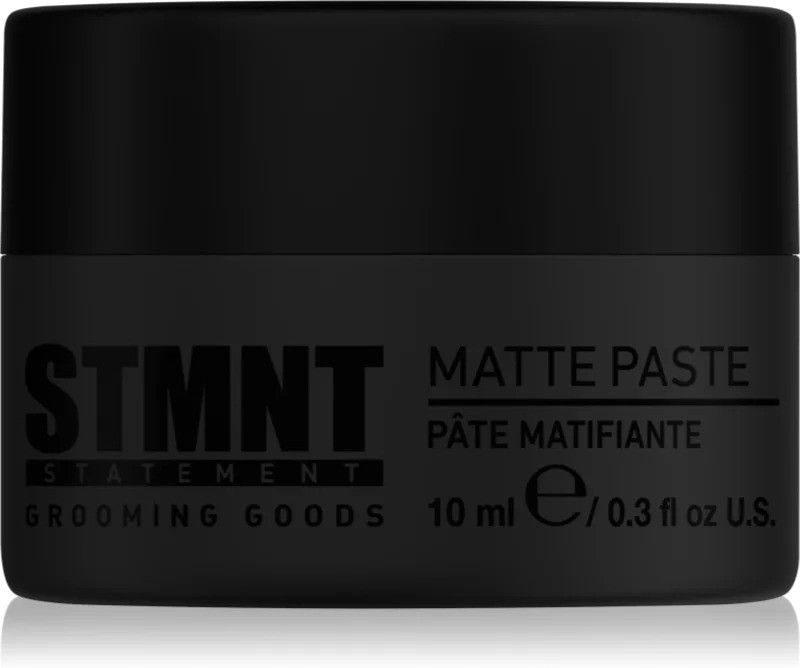 STMNT Julius Cvesar Matte Paste, 10 ml, Pasty do włosów dla mężczyzn, Pasta do włosów STMNT Julius Cvesar Matte Paste w ciągu kilku chwil tworzy doskonałą fryzurę, która wytrzyma przez cały dzień. Umożliwi Ci stworzenie wymarzonej stylizacji dodatkowo długotrwale utrwalając włosy bez nienaturalnego efektu i poczucia twardości na włosach. Zapewnia mocne utrwalenie, ale pozostaje elastyczna, dzięki czemu możesz zmieniać kształt fryzury w dowolnym momencie w ciągu dnia. W odróżnieniu od zwykłych żeli do stylizacji nadaje włosom raczej matowe wykończenie. Dzięki wielu swoim zaletom i łatwości stosowania stanie się Twoim niezastąpionym pomocnikiem w codziennej stylizacji włosów. Właściwości: utrwali fryzurę w pożądanym kształcie zapewnia matowy wygląd ułatwia stylizację nie obciąża włosów łatwo się spłukuje Skład: produkt wegański Sposób użycia: Nanieś niewielką ilość preparatu na wilgotne lub suche włosy, a potem nadaj im pożądany kształt.