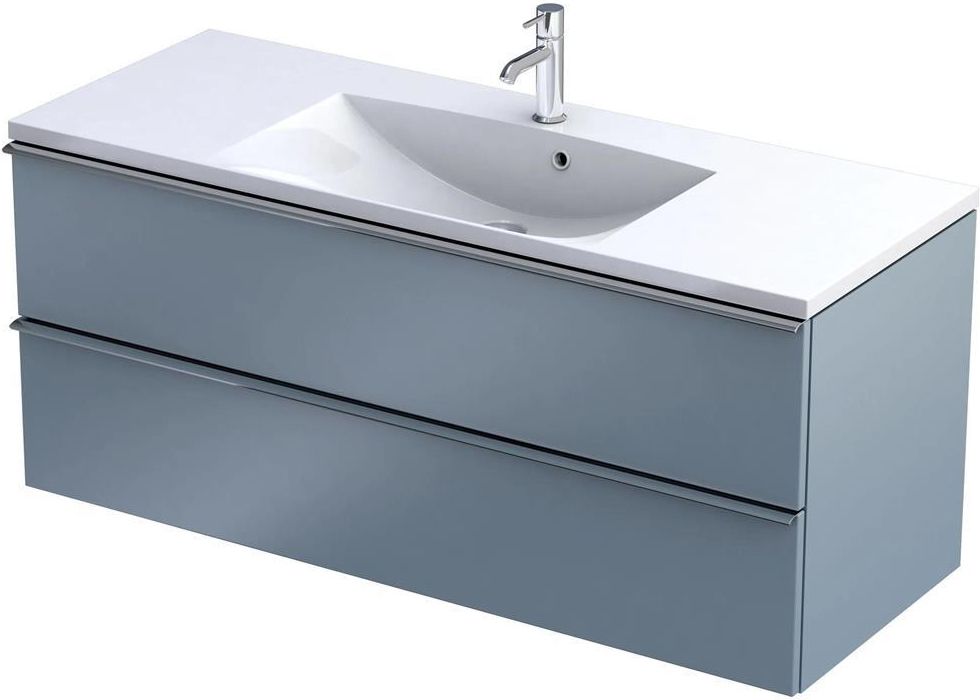 Szafka podumywalkowa 120 cm dwie szuflady bez uchwytów Oristo Etna szaroniebieski mat OR52-SD2S-120-16 Informacje o produkcie: - Kompletowanie: kompletowanie: uchwyty ETNA, umywalki UNI 120 cm., blaty UNI, umywalki nablatowe, nogi UNI pozostałe szafki dolne ETNA - Wymiary (szer./wys./gl.): 119,6 x 50 x 45,5 cm - Jedna kolekcja, nieskończone możliwości. ETNA to kolekcja szafek łazienkowych, która najlepiej wyraża się poprzez personalizację: dwa warianty uchwytów – długie (40, 60, 80, 120 cm) oraz krótkie (20 cm) – w różnych wariantach kolorystycznych oferują wiele możliwości kompozycji i dopasowania frontów szafek. Podobnie jak inne kolekcje mebli łazienkowych UNI ETNĘ można łączyć z szeroką gamą umywalek meblowych, nablatowych oraz dedykowanych blatów i akcesoriów, tworząc nieskończone warianty nowoczesnych aranżacji.