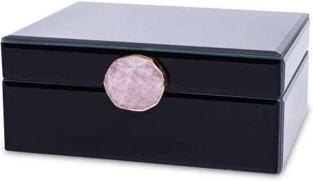 Szkatułka kasetka na biżuterię szklana glamour 8x18,5x16 166686Rozmiar: 8x18,5x16Kolor: czarny, różowyMateriał: mdf, szkło, agat