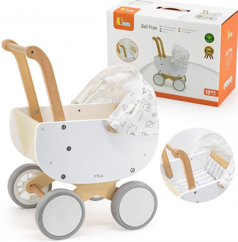 VIGA Drewniany Wozek dla Lalek z Gondola VIGA Drewniany Wozek dla Lalek z Gondola VIGA Drewniany Wozek dla Lalek z Gondola Uroczy drewniany wózek dla lalek z renomowanej marki Viga to połączenie dobrej jakości drewna z nowoczesnym designem. Opony EVA zapewniają mocną i antypoślizgową konstrukcję - zabawka jest bezpieczna dla dzieci. Wózek wykonany jest w nowoczesnej, jasnej kolorystyce, a materiałowy kapturek idealnie dopełnia spójny wygląd zabawki.Charakterystyka: - Zabawka od 18 miesiąca życia - Ruchoma materiałowa osłonka - Bezpieczne, antypoślizgowe koła EVA - Mocna drewniana konstrukcja - Idealny do zabawy w odgrywanie ról - Bawienie się lalkami rozwija u dzieci wyobraźnię, uczy empatii oraz wspiera rozwój emocjonalny. VIGA Drewniany Wozek dla Lalek z Gondola OKAZJA! Sprawdź inne nasze oferty!