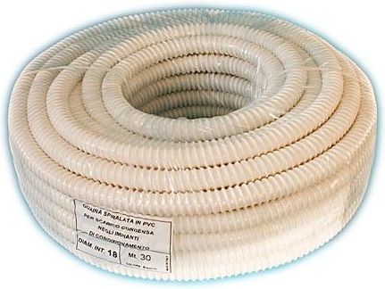 Rurka do odprowadzania skroplin z klimatyzatora - fi 18mm 30 mb PARAMETRY TECHNICZNE Kolor: Biały Średnica wewnętrzna: 18mm Materiał wykonania: PVC Długość: 30 mb Zastosowanie odprowadzanie skroplin z klimatyzatora, odprowadzanie skroplin z kotła, odprowadzanie skroplin z pompy ciepła, odprowadzanie skroplin ze split, odprowadzanie skroplin z mulit-split. Cechy ELASTYCZNOŚĆ - ułatwia poprowadzenie go w trudno dostępnych miejscach, ZAPOBIEGANIE ZAGIĘCIOM - wąż jest karbowany, co uniemożliwia powstawanie zagięć i blokowanie drożności węża, BEZPROBLEMOWY MONTAŻ - nie wymaga stosowania dodatkowych akcesoriów (np. kształtek) DO WEWNĄTRZ I ZEWNĄTRZ TRWAŁOŚĆ - rura wykonana jest z wytrzymałego tworzywa PVC