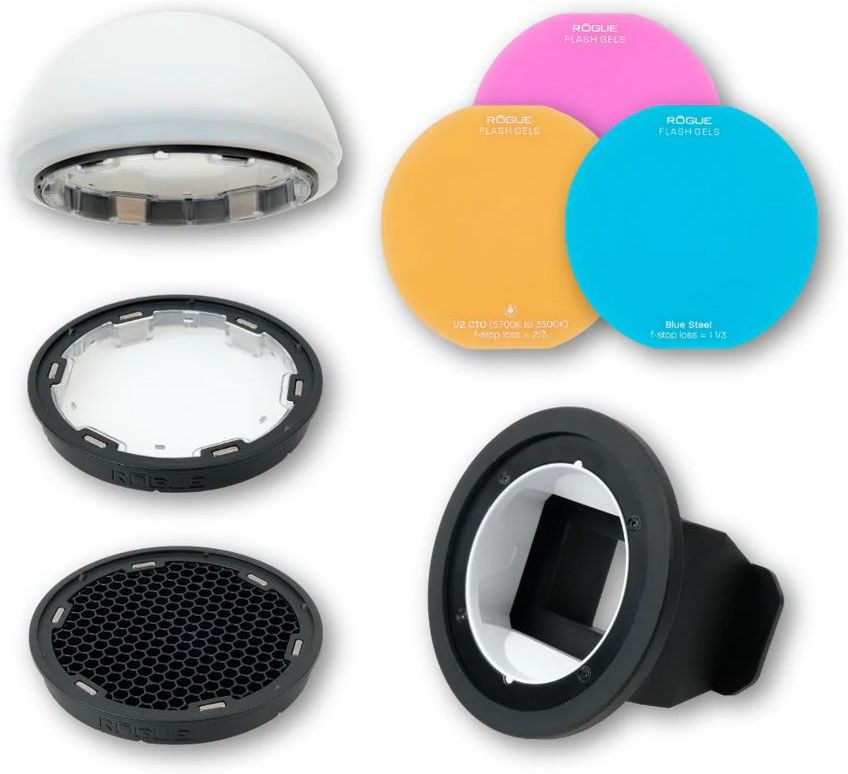 Zestaw zestawu zawiera: 1 x kopułkę dyfuzora Rogue Flash (miękki silikon), 2 x soczewki żelowe Rogue Flash (jeden montowany wewnątrz kopułki lampy błyskowej), 1 x Rogue Flash 45˚, 1 adapter Rogue Flash (mały), 1 zestaw startowy z 3 żelami, 1 x etui do przechowywania. Modyfikatory światła błyskowego …