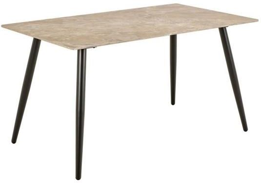 Stół Wicklow 140x80cm z ceramiki Aberta: elegancja i trwałość w jednym Jeżeli cenisz sobie minimalizm, funkcjonalność i trwałość, stół Wicklow 140x80cm z ceramiki Aberta jest właśnie dla Ciebie. Wykonany z brązowej ceramiki, która jest odporna na wysokie temperatury i zarysowania, ten stół sprawdzi się w każdej kuchni czy jadalni. Cztery solidne nogi z czarnej stali zapewniają stabilność i równowagę, a ich stożkowy kształt dodaje całości lekkości i nowoczesności. Stół pomieści 4 osoby, więc będzie idealny zarówno do codziennych posiłków, jak i do organizowania przyjęć dla rodziny czy przyjaciół. Minimalistyczny stół z ceramiki: styl i wytrzymałość Stół Wicklow 140x80cm łączy w sobie styl minimalistyczny z wytrzymałością ceramiki. Prostokątny blat jest odporny na zarysowania i wysokie temperatury, dzięki czemu ten stół posłuży Ci przez wiele lat. Czarna stal, z której wykonane są nogi, gwarantuje stabilność i bezpieczeństwo. Bez względu na to, czy zdecydujesz się na codzienne użytkowanie, czy na sporadyczne przyjęcia - ten stół sprosta wszystkim wyzwaniom. Stół marki Actona: gwarancja jakości i stylu Wybierając stół Wicklow 140x80cm marki Actona, wybierasz jakość i styl. Ten minimalistyczny stół został zaprojektowany tak, aby idealnie pasować do każdej nowoczesnej kuchni czy jadalni. Beżowy blat i czarne nogi tworzą harmonijną całość, która wprowadzi do Twojego wnętrza nutę elegancji. Dzięki temu stołowi, Twoje posiłki staną się jeszcze przyjemniejsze. Co powinieneś wiedzieć przed zakupem Stół Wicklow 140x80cm wykonany jest z ceramiki i stali - materiałów znanych ze swojej trwałości i odporności na zarysowania oraz wysokie temperatury. Minimalistyczny design stołu sprawia, że pasuje on do każdego wnętrza - od nowoczesnej kuchni po loftową jadalnię. Stół pomieści 4 osoby, dzięki czemu jest idealny zarówno do codziennych posiłków, jak i do organizowania przyjęć. Produkt wymaga samodzielnego montażu, ale nie martw się - jest to proste i nie zajmie Ci dużo czasu. Pamiętaj, że stół Wicklow 140x80cm nie jest przeznaczony do użytku na zewnątrz.