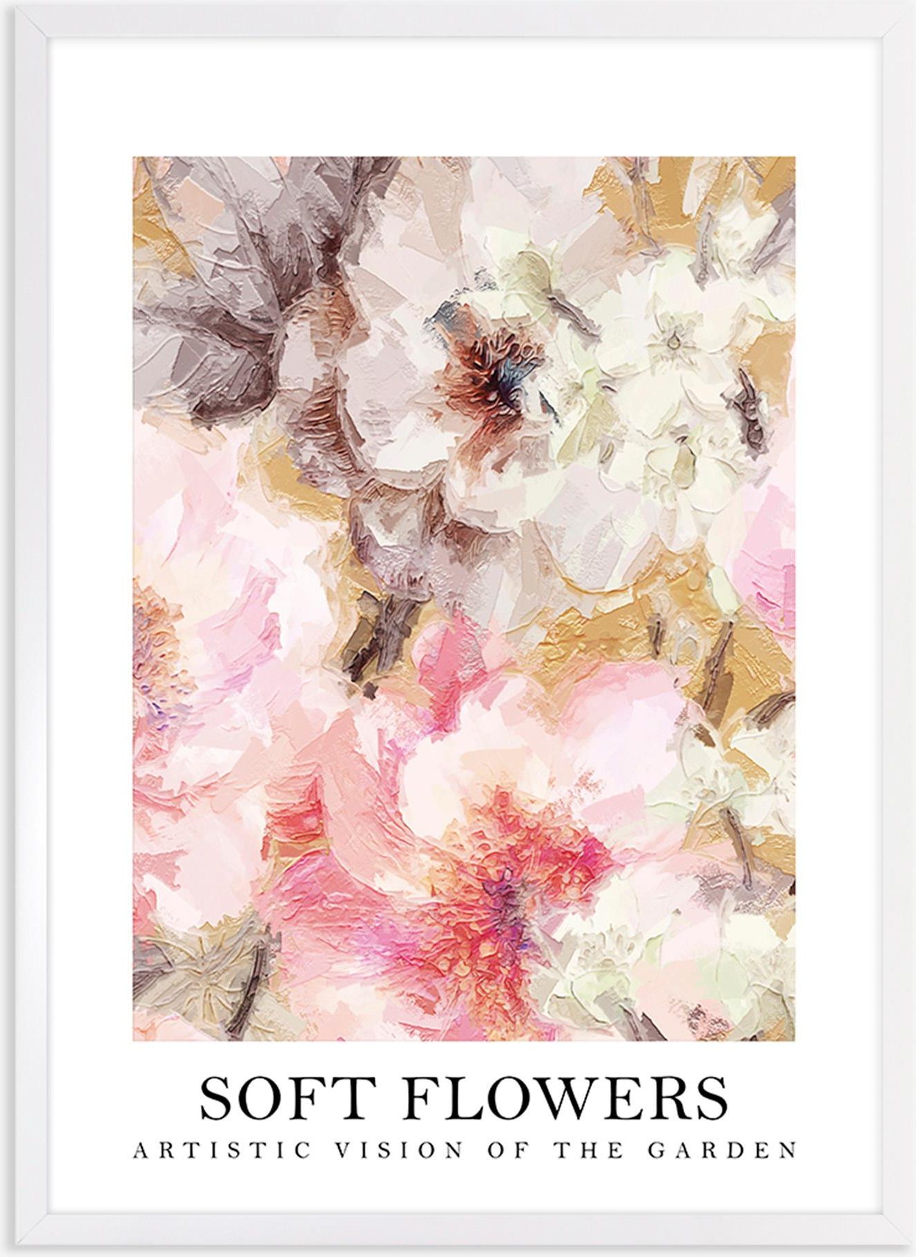 ObrazSOFT FLOWERS udekoruje wnętrze salonu w romantycznym stylu. Spodoba się też miłośnikom sztuki.Grafika przedstawia kolorowe kwiaty w odcieniach różu i beżu. Przyciągnie uwagę i wizualnie ożywi aranżację. Rama z polistyrenu wyróżnia się podwyższoną trwałością. Wymiary obrazu: 50x70 cm, Wymiary obrazu z ramą 53x73 cm. By zadbać o spójny wystrój, dobierz drugi obraz o podobnym motywie.
