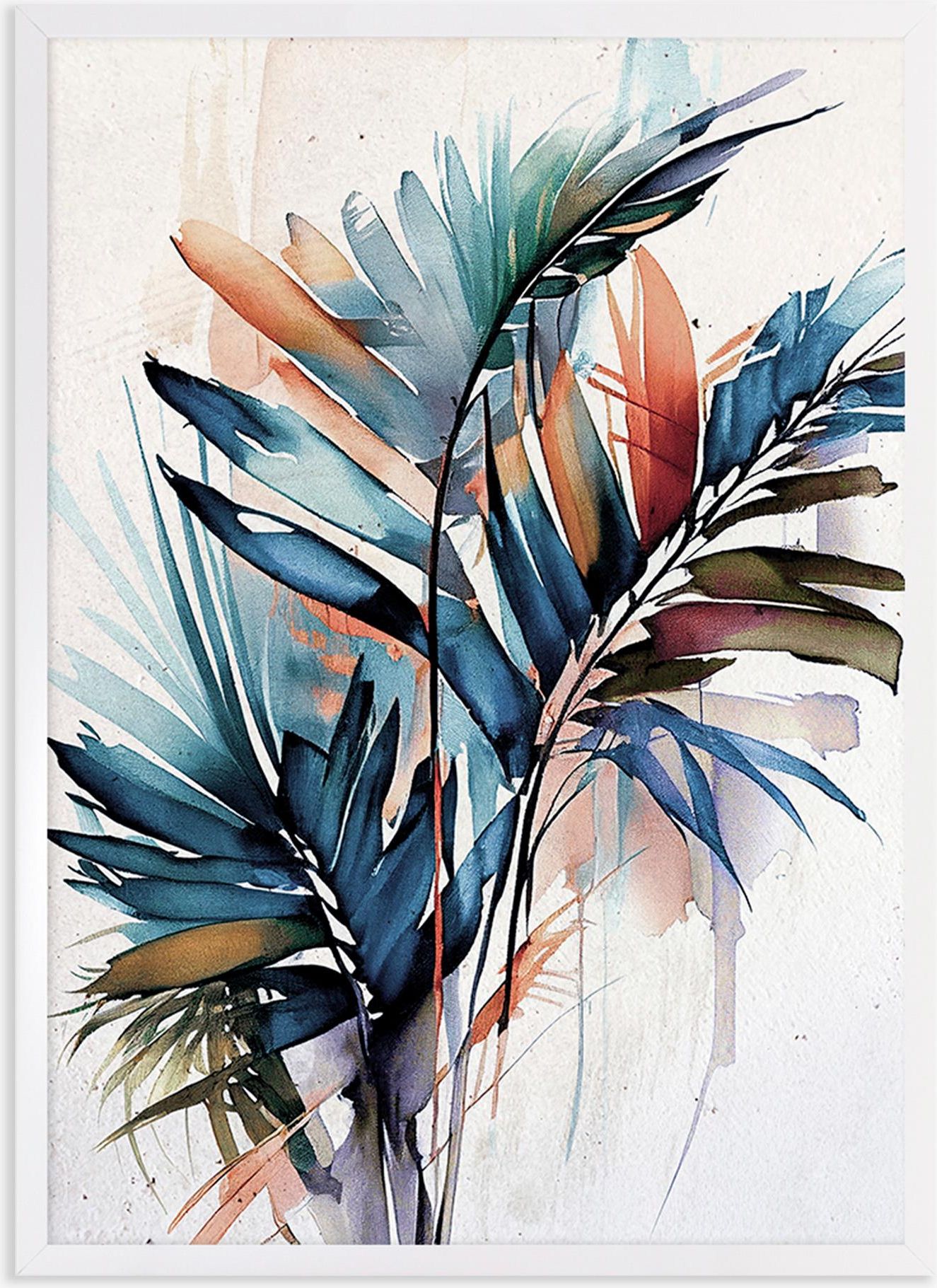Obraz WATERCOLOR LEAVES I będzie miłym prezentem dla kogoś, kto lubi kolorowe dekoracje. Rama jest lekka i ma wyższą odporność na wilgoć. Z łatwością go zawiesisz. Wymiary obrazu: 50x70 cm. Wymiary obrazu z ramą: 53x73 cm. W kolekcji znajdziesz obraz z tym samym motywem. Stworzysz spójny zestaw.