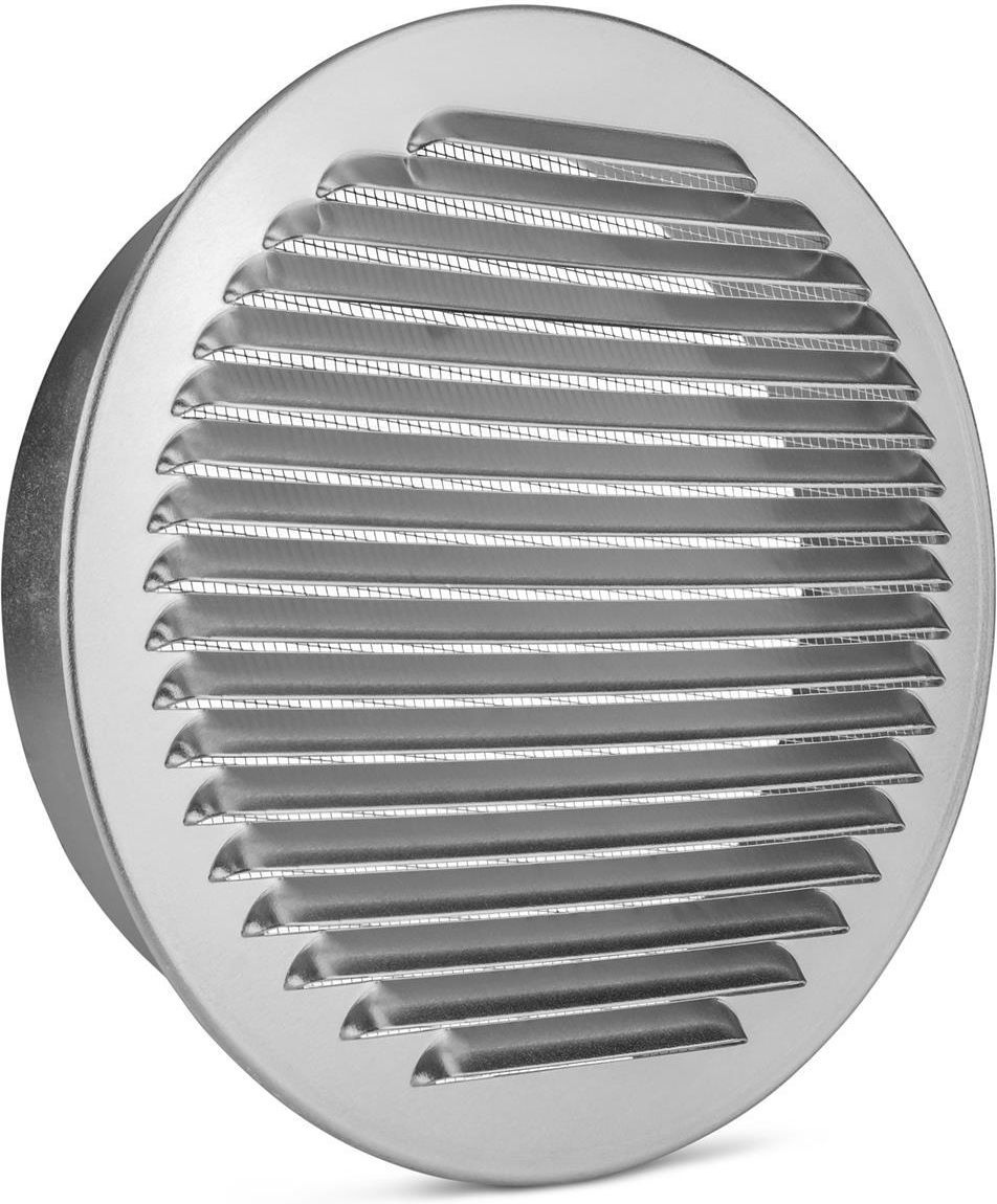 Czerpnia - wyrzutnia ścienna BLR 250 Okrągła żaluzja wlotowa lub wylotowa z nieruchomymi żaluzjami wykonana z aluminium. Korpus tłoczony z aluminium, przyłącze z zaciskami. Za piórami żaluzji znajduje się drobna siatka przeciw insektom.