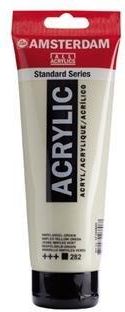 Farba akrylowa Amsterdam Acrylic 250 ml - 282 Naples yellow green Farby Amsterdam Acrylic firmy Royal Talens tworzone są w 100% z emulsji akrylowej z dodatkiem wysokich jakości pigmentów. Są praktycznie pozbawione zapachu a po wyschnięciu – elastyczne i odporne na spękania. Kremowa konsystencja farb Amsterdam minimalizuje pozostawiane przez pędzle ślady pociągnięć. Charakteryzują się bardzo krótkim czasem schnięcia oraz wysoką światłoodpornością. Zamknięte w wygodnej plastikowej tubce lub – w przypadku większych pojemności – plastikowej butelce.