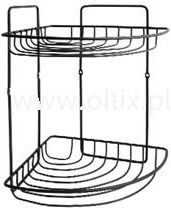 Podwójna narożna półka ścienna czarna Sposób montażu: przykręcana (śrubki w komplecie) Materiał: stal malowana Wymiary wysokość: 33,5 cm szerokość: 22,5 cm głębokość: 23,5 cm Przechowywanie kosmetyków i innych akcesoriów łazienkowych wymaga wygospodarowania do tego celu odpowiedniego miejsca. Jeśli chodzi o gąbki, myjki, szczotki do masażu, czy też kosmetyki myjące, to dobrze by było, aby znalazły się one niedaleko wanny lub prysznicu. Dlatego warto umieścić je w koszykach drucianych, które można zamontować w takim miejscu. Narożna półka łazienkowa w kolorze czarnym sprawdzi się jako idealny dodatek do każdej łazienki. Półka wykonana została ze stali malowanej proszkowo na kolor czarny matowy. Półka jest łatwa w montażu - można ją zawiesić na wkrętach (w zestawie). Półka jest pojemna i łatwa w czyszczeniu. OLTIX