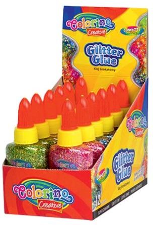 Klej brokatowy w kolorach tęczy do błyszczących dekoracji. Może być wykorzystywany na różnych podłożach, łatwy w aplikacji, wysycha w ciągu 30 minut. Produkt wysyłany losowo.