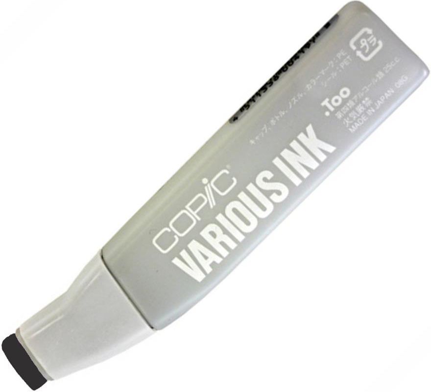 tusz COPIC Various Ink do napełniania markerów COPIC trwały tusz na bazie alkoholu kolor: N10 Neutral Gray No.10 dostępny w 358 kolorach pojemność: 25 ml(0,85 uncji) jedna butelka COPIC Various Ink jest w stanie uzupełnić identycznym kolorem: marker COPIC Classic do 8 razy marker COPIC Sketch do 12 razy marker COPIC Ciao do 16 razy marker COPIC Wide do 6 razy dzięki takiemu rozwiązaniu produkty firmy Too są praktyczne, ekonomiczne oraz ograniczają degradację środowiska naturalnego tusze COPIC Various Ink mogą również być łączone ze sobą w celu uzyskania nowego koloru, niedostępnego w gamie 358 kolorów nowe kolory można przechowywać w dostępnych pustych buteleczkach Various Ink łączenie może odbywać się przy pomocy pustego markera lub gąbki do zakładania tła produkt japńskiej firmy Too/Copic