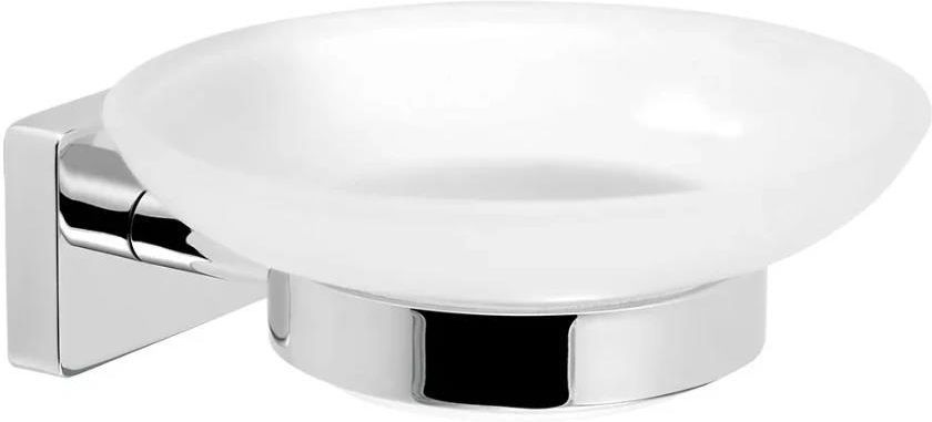 Mydelniczka konstrukcja uchwytu chrom Miska z matowego szkła szerokość 103 m wysokość 43 mm głębokość 117 mm montaż na ścianie poprzez wiercenie lub klejenie klej nie wchodzi w skład zestawu