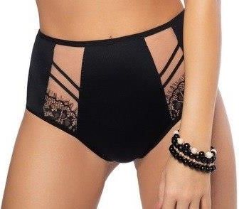 Piękne, wysokie figi wykonane z miękkiej microfibry ozdobionej z przodu dwoma wstawkami z tiulu i delikatnej koronki. Tył gładki. Nogawki z przodu wykończone cieniutką, gładką taśmą elastyczną. Z tyłu nogawki wykończone gładko podwójnie złożonym tiulem elastycznym.