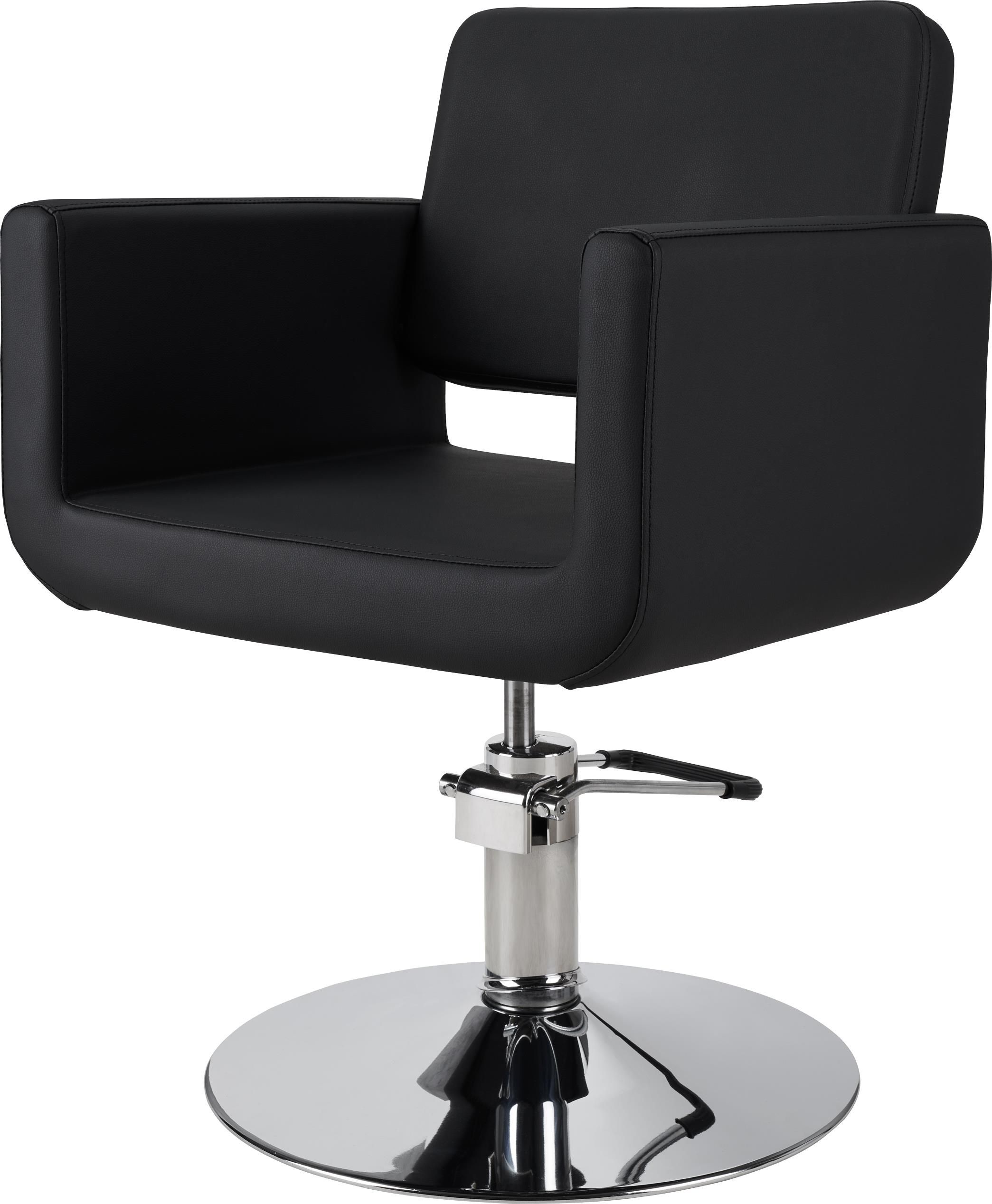 W pełni tapicerowane, szerokie siedzenie w prostej formie. Wypełnienie siedziska z pianki poliuretanowej Czarna tapicerka Pompa hydrauliczna z okrągłą podstawą chromowaną szerokość fotela 60,5-61 cm wysokość fotela 48 cm głębokość fotela 54 cm szerokość podłokietnika 6 cm wysokość podłokietnika …