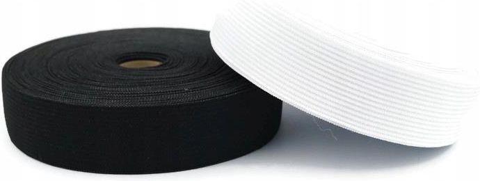 Guma-gumka Płaska Odzieżowa 25 mm Czarna/biała 1mb Bełchatów