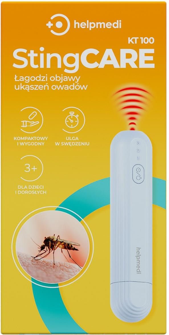 .naglowek1{ font-size:2em; } .paddingtxt{ padding:0 20px; } HelpMedi StingCare – Na swędzące ukąszenia owadów HelpMedi StingCare to innowacyjne, przenośne urządzenie, które wykorzystuje technologię światła termicznego, aby szybko i skutecznie łagodzić świąd oraz ból spowodowany użądleniami i ukąszeniami owadów bez użycia środków farmakologicznych. Sekret HelpMedi StingCare tkwi w technologii podgrzewania miejsca ugryzienia. Pod wpływem ciepła dochodzi do rozpadu białek wstrzykniętych z śliną owada, które są odpowiedzialne za obrzęk i swędzenie. Jest to szczególnie istotne u dzieci (produkt dla dzieci 3+), bo przynosi natychmiastową ulgę w swędzeniu i redukuje opuchliznę, po ugryzieniu owadów (np. komarów). Dzięki kompaktowym wymiarom i lekkiej konstrukcji, StingCare można zabrać ze sobą wszędzie, gdzie możesz spotkać się z nieprzyjemnym ukąszeniem owada. HelpMedi StingCare Skuteczność: HelpMedi StingCare łagodzi świąd i ból w ciągu kilku sekund, przynosząc natychmiastową ulgę i komfort. Bezpieczeństwo: Urządzenie nie zawiera chemikaliów ani substancji drażniących, co czyni je idealnym dla dzieci (od 3 lat), dorosłych oraz kobiet w ciąży. Łatwość użycia: Wystarczy przyłożyć urządzenie do miejsca ukąszenia na kilka sekund, aby poczuć ulgę. Prosta obsługa sprawia, że każdy może z niego skorzystać. Kontrola: Posiada 6 poziomów temperatury – bez trudu dopasujesz go do swoich preferencji. Przenośność: Jest niewielki i lekki co umożliwia łatwe przenoszenie i użycie w każdych warunkach – w domu, na wycieczce, czy w podróży. Ekonomiczność: Możesz używać go wielokrotnie, przynosząc ulgę przy tysiącach ukąszeń, co czyni je długotrwałym i oszczędnym rozwiązaniem. Ładowanie: Nie musisz się martwić wymianą baterii – dzięki kabelkowi USB i wbudowanemu akumulatorkowi naładujesz go nawet z ładowarki samochodowej. Koniec ze swędzącymi ukąszeniami Wyobraź sobie letni dzień spędzany na świeżym powietrzu z rodziną. Twoje dziecko, pełne radości i energii, biega po trawie, ciesząc się beztroską zabawą. Nagle zauważasz, że zaczyna drapać się po ramieniu, a na jego twarzy pojawia się grymas smutku. W takich momentach HelpMedi StingCare staje się niezastąpionym sojusznikiem. To niewielkie urządzenie, które zawsze możesz mieć przy sobie, w kilka sekund przynosi ulgę, eliminując świąd i ból. Dzięki niemu Twoje dziecko szybko wraca do zabawy, a Ty możesz cieszyć się spokojem, wiedząc, że znalazłeś bezpieczne i skuteczne rozwiązanie. Koniec ze swędzącymi ukąszeniami HelpMedi StingCare KT-100 to nowoczesne rozwiązanie, które szybko i skutecznie łagodzi skutki ukąszeń owadów. Dzięki technologii światła termicznego, StingCare skutecznie redukuje świąd i ból, które są powszechnymi problemami po użądleniach i ukąszeniach. Produkt jest bezpieczny dla wszystkich członków rodziny, w tym dzieci od 3 roku życia oraz kobiet w ciąży, co czyni go niezastąpionym w domowej apteczce. Jednak najważniejsze jest to, że StingCare jest niezwykle łatwy w obsłudze. Wystarczy przyłożyć go do miejsca ukąszenia na kilka sekund, a ciepło natychmiast zaczyna działać, przynosząc ulgę. Pełna kontrola i bezpieczeństwo StingCare posiada sześć poziomów temperatury, które można łatwo dostosować w zależności od potrzeb. Urządzenie automatycznie zapisuje wybrany poziom temperatury, co zwiększa wygodę użytkowania. Podwójny przełącznik bezpieczeństwa zapobiega poparzeniom, a wskaźnik temperatury za pomocą diod umożliwia dostosowanie urządzenia do indywidualnych potrzeb użytkownika. Dodatkowo, wskaźnik niskiego poziomu baterii oraz automatyczna funkcja czuwania sprawiają, że StingCare jest zawsze gotowe do użycia, oszczędzając jednocześnie energię. Temperatura i czas nagrzewania Tryb niskiej temperatury: 40 ℃ ~ 44 ℃: Pozycja 1: 40 ℃, czas nagrzewania: 10 s Pozycja 2: 42 ℃, czas nagrzewania: 10 s Pozycja 3: 44 ℃, czas nagrzewania: 7 s Tryb wysokiej temperatury: 45 ℃ ~ 50 ℃: Pozycja 1: 45 ℃, czas nagrzewania: 7 s Pozycja 2: 47 ℃, czas nagrzewania: 5 s Pozycja 3: 50 ℃, czas nagrzewania: 3 s Zawartość opakowania Jednostka główna urządzenia łagodzącego objawy ukąszeń owadów Akcesoria: kabel USB typu C Zawieszka Obsługa StingCare A. Przełącznik trybu: przełączanie trybu temperatury: L: tryb niskiej temperatury (wskaźnik pozycji świeci na niebiesko), H: tryb wysokiej temperatury (wskaźnik pozycji świeci na czerwono). B. Przycisk zasilania: wyjście z trybu czuwania (rozpoczęcie ogrzewania) i przełączanie pozycji temperatury (trzy pozycje dla każdego trybu) pozycja 3: wysoka temperatura pozycja 2: średnia temperatura pozycja1: niska temperatura. Dane Techniczne i informacje o produkcie table.greyGridTable { border: 2px solid #ABABAB; width: 100%; text-align: left; border-collapse: collapse; } table.greyGridTable td, table.greyGridTable th { border: 1px solid #ABABAB; padding: 7px 4px; } table.greyGridTable tbody td { font-size: 16px; } table.greyGridTable tfoot td { font-size: 14px; } Nazwa HELPMEDI StingCare KT100 Napięcie robocze DC 3,6 V – 4,2 V Prąd roboczy ≤ 250mA Zasilanie Bateria litowa wielokrotnego ładowania (3,7 V) Napięcie wyjściowe: DC 5V Prąd wyjściowy: 1000 mA Żywotność baterii Ładowanie i rozładowywanie: nie mniej niż 500 razy Specyfikacja adaptera Wymiary i waga Wymiary 111 mm (dł.) × 24 mm (szer.) × 22 mm (wys.) Waga Około 45 g (łącznie z baterią litową) Kategoria Urządzenie łagodzące objawy ukąszeń owadów Status formalny Urządzenie elektryczne (nie jest wyrobem medycznym) Przeznaczenie Dla dzieci od 3 lat, dorosłych i kobiet w ciąży. Przeciwwskazania i zalecenia użytkowania Urządzenia nie należy używać: W przypadku osób chorych na cukrzycę, ponieważ mogę one mieć zmniejszoną wrażliwość na ból i mogą się poparzyć. U osób n