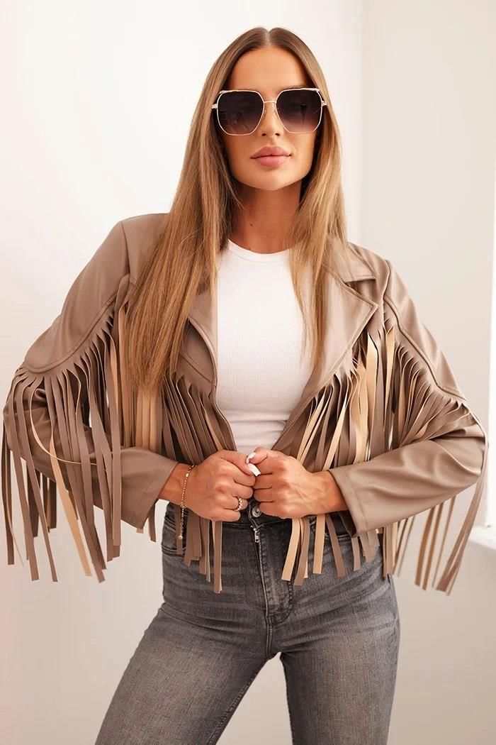 Kurtka damska boho eko skóra frędzle krótka fango Bełchatów