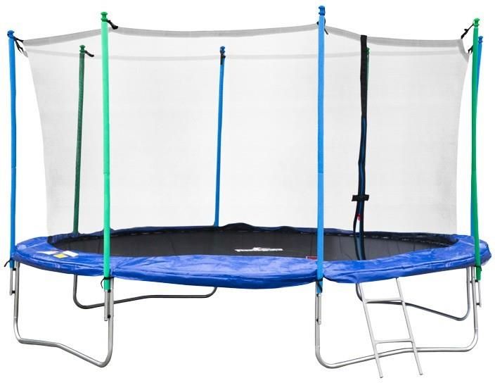 Duża trampolina do skakania - doskonałe miejsce do zabawy na świeżym powietrzu Rama oraz nogi wykonane są z rurek o dużej średnicy, co gwarantuje stabilność oraz amortyzuje wszelkie ruchy. Trampolina ogrodowa dla dzieci oparta jest na czterech nogach w kształcie litery U. Najlepsza trampolina posiada 64 sprężyny, co pozwala na wysokie skoki. Trampolina ma dodatkowo zwiększoną średnicą, co znacznie zwiększa powierzchnię do skakania. Bezpieczna trampolina ogrodowa z siatką wewnętrzną Duża trampolina do ogrodu posiada siatkę wewnętrzną o wysokości 180cm, co zapewnia bezpieczeństwo użytkowania nawet podczas wysokich skoków. Siatka jest zamykana na zamek - zapobiega to wypadnięciu z trampoliny. Wsporniki siatki są dodatkowo osłonione pianką. Atutem jest osłona na sprężyny, która ogranicza możliwość uderzenia lub kontuzji. Ogrodowa trampolina z siatką jest zgodna z normami, które gwarantują bezpieczeństwo użytkowania. Duża trampolina ogrodowa z drabinką duża średnica rur gwarantuje amortyzację ruchów oraz wytrzymałość 4 nogi w kształcie litery U znacznie wpływają na stabilność na wysokie skoki i odpowiednie naprężenie maty pozwalają aż 64 sprężyny siatka wewnętrzna oraz osłona na sprężyny zapewniają bezpieczeństwo użytkowników drabinka ułatwia wchodzenie i schodzenie dzięki zastosowanym materiałom czas użytkowania jest dłuższy Duża trampolina dla dzieci z solidną konstrukcją Trampolina do skakania ma konstrukcję wykonaną ze stali galwanizowanej, dzięki czemu jest ona odporna na korozję. Mata wykonana została z materiału PP, który jest wytrzymały i elastyczny. Wykorzystane materiały charakteryzują się wysoką odpornością na uszkodzenia mechaniczne oraz odpornością na warunki atmosferyczne. Ogrodowa trampolina z siatką to bezpieczne miejsce dla Twojego dziecka Duża trampolina do skakania zapewnia świetną zabawę w ogrodzie. Bezpieczna trampolina ogrodowa jest atrakcyjnym elementem w ogrodzie, który zachęca dzieci do zabawy poprzez ruch.