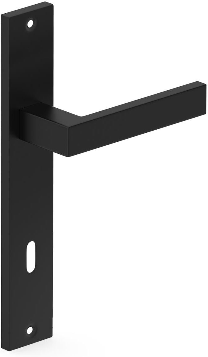 Modna, kwadratowa klamka do drzwi wewnętrznych, produkt łączący ponadczasowy wzór z wygodą użytkowania dzięki odpowiedniemu wyprofilowaniu rękojeści. Klamki w wersji na długim szyldzie oferowane są w rozmiarach standardowych; 72mm oraz przebiciach; na klucz.