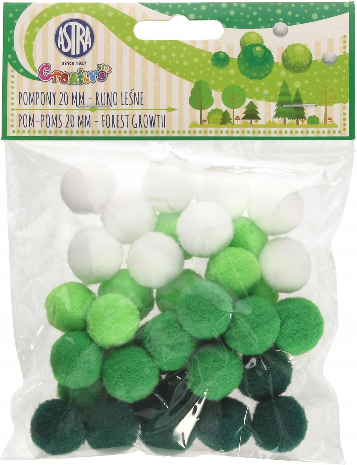 POMPONY 20 mm ZESTAW RUNO LEŚNE ASTRA CREATIVO Piękne, kolorowe pompony doskonale nadają się do wszelkiego rodzaju aktywności rękodzielniczej. Wspaniale sprawdzą się przy tworzeniu prac kreatywnych takich jak kartki okolicznościowe, ozdoby świąteczne czy albumy. Można ozdabiać nimi prezenty, ubrania oraz używać jako element wystroju wnętrz.