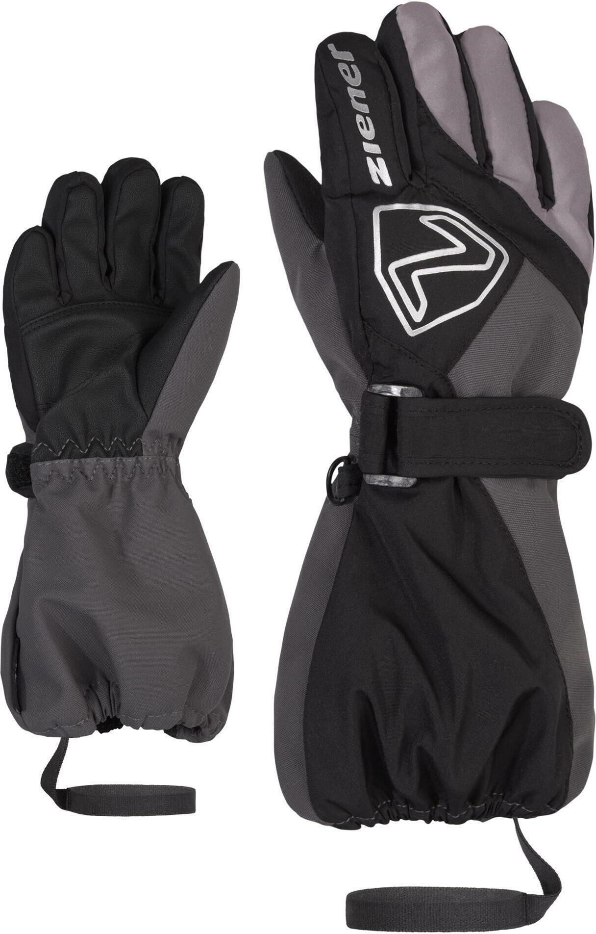 Rękawiczki dziecięce Ziener Lauro AS Glove Junior - black/magnet to wygodny model z długimi mankietami, który wykorzystuje zalety membrany Ziener Aquashield®. Idealne na stok narciarski oraz zabawy na śniegu. Rękawiczki dziecięce Ziener Lauro AS Glove Junior - black/magnet to dziecięcy model, który dzięki membranie Ziener Aquashield® zapewnia właściwości wodoodpornie i chroni przed wychładzającym wpływem wiatru. Membrana pozwala także na sprawne odprowadzanie wilgoci z wnętrza rękawiczek, co pozwala zachować komfortowy i suchy klimat przy skórze przez dłuższy czas. Model ma dłuższe mankiety, które z łatwością można założyć na kurtkę, zapobiegając dostawaniu się do wewnątrz śniegu. Tasiemka z rzepem przy nadgarstku pozwala na dopasowanie całości i stabilizację modelu na dłoni. Wewnętrzny materiał jest miły w dotyku i zapewnia podstawowy komfort cieplny. Model został wyposażony także w pętle nadgarstkowe i odblaskowe elementy dla zapewnienia bezpieczeństwa po zmroku. Rękawiczki Ziener Lauro AS Glove Junior - black/magnet - najważniejsze cechy:Narciarski model dziecięcy;Membrana Ziener Aquashield® zapewni właściwości wodoodporne i podstawową ochronę przed wiatrem;Ziener Aquashield® to także sprawne odprowadzenie wilgoci;Długie mankiety zakończone elastyczną gumką;Dodatkowa tasiemka z rzepem przy nadgarstkach dla lepszego dopasowania;Pętle nadgarstkowe;Miły materiał wewnętrzny zapewniający podstawowy komfort cieplny;Pięciopalczasty krój;Elementy odblaskowe.