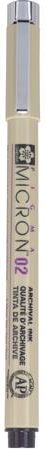 Sakura Pigma Micron 02 to profesjonalne, precyzyjne cienkopisy z unikalnym tuszem archiwalnym na bazie wody cienkopisy doskonale nadają się do pisania oraz rysunku technicznego, prac plastycznych, ilustracji; zastosowań hobbystycznych, takich jak scrapbooking; polecane także do popularnej techniki ZENTANGLE zalecane dla antropologów, entomologów, archiwistów, architektów, do wykonania profesjonalnych wzorównfrezów diamentowych, rysowników (Manga i Anime), artystów ilustratorów, artystów piszących po tkaninach budowa końcówki dozującej tuszu jest tajemnicą firmy i zapewnia doskonałą kontrolę, lekkość kreślenia i idealny przepływ tuszu pod każdym kątem szybkoschnący i nie przesiąkliwy przez papier grubość linii: 0,3 mm; końcówka metalowa kolor: czarny (49 Black) produkowane wielkości ultra cienkich liniach: 005 (0,2 mm), 01 (0,25 mm), 02 (0,3 mm), 04 (0,35 mm), 05 (0,45 mm) i 08 (0,5 mm) zawarty tusz Pigma Ink to jeden z najlepszych tuszy, gładko piszący pigmentowy na bazie wody, trwały na różnych rodzajach papieru, w tym na papierze bezkwasowym, kalce technicznej oraz na porowatych powierzchniach stabilny chemicznie, odporny na blaknięcie i wodoodporny (jakość archiwalna) bezwonny, szybkoschnący i nieprzesiąkliwy przez papier produkt japońskiej firmy Sakura