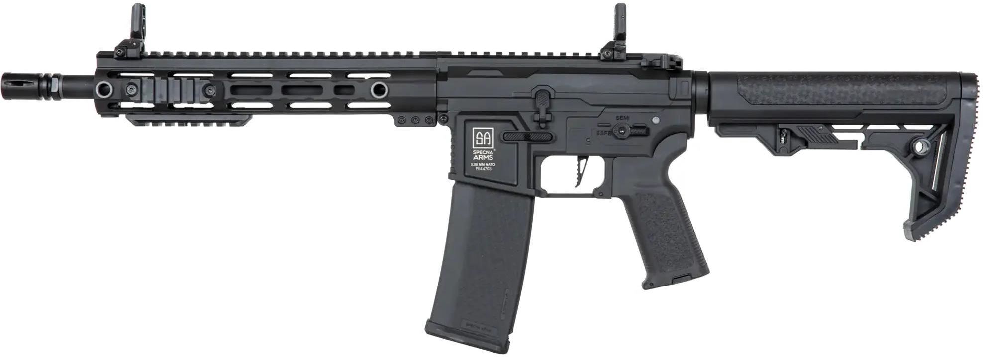 Elektryczna replika karabinka szturmowego z serii Flex. Cechuje się wzmocnionym gearboxem V2 oraz modułem HAL ETU. Na replikę naniesiono oznaczenia Specna Arms wraz z numerem seryjnym. Do zestawu dołączony jest magazynek Hi-Cap typu S-MAG o pojemności 300 kulek.