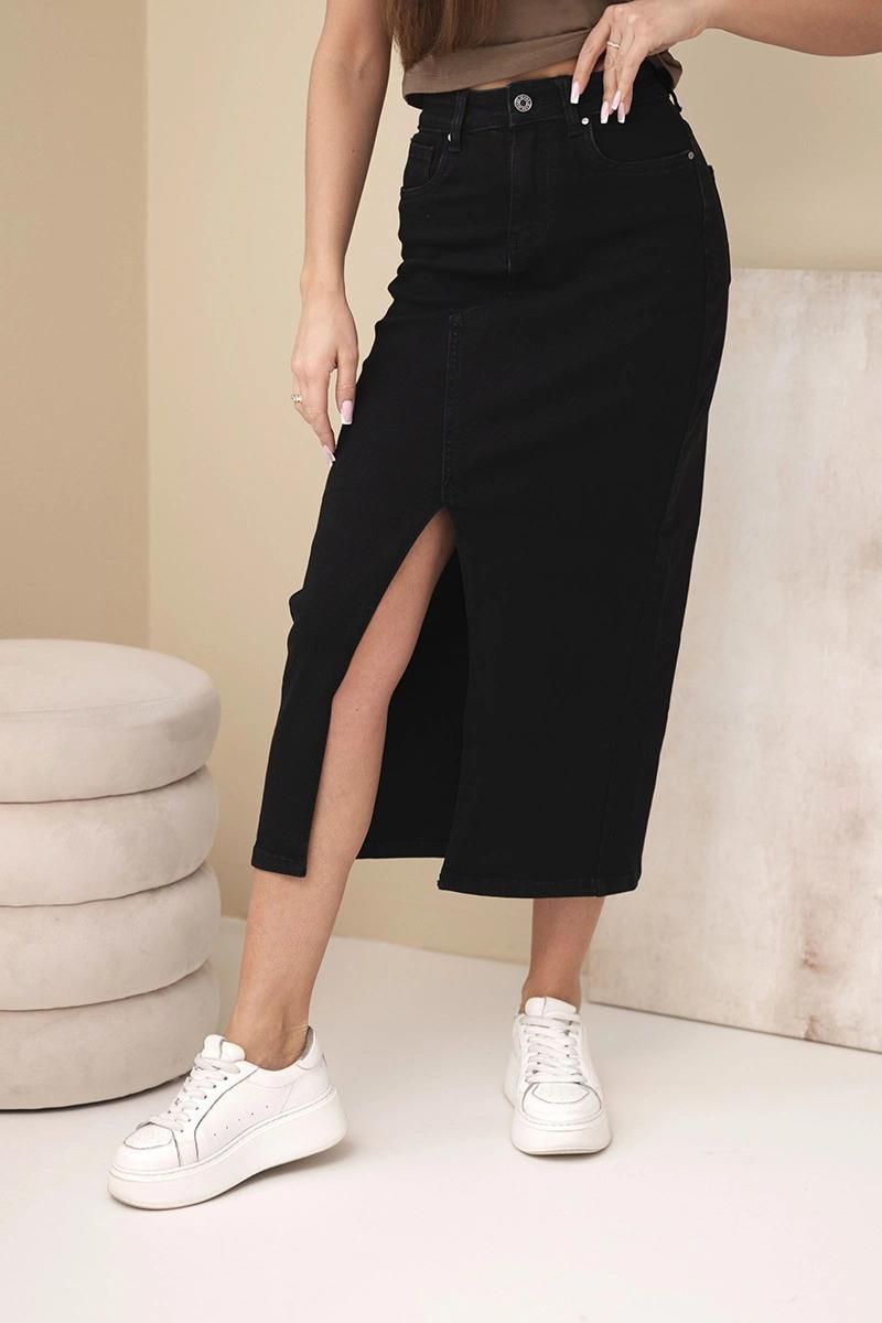 Spódnica jeansowa damska midi z wysokim stanem - M Bełchatów