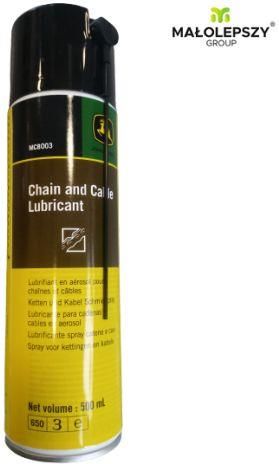 Smar do łańcuchów i linek John Deere MCB003 Dbaj o swój sprzęt, a będzie Ci służyć długie lata. Oryginalny smar do łańcuchów przenika do wszystkich jego elementów pokrywając je specjalną ochronną powłoką.Dzięki temu zmniejsza się tarcie i zużycie całego łańcucha. Dodatkowo smar do łańcuchów i linek John Deere chroni przed wodą, co zapobiega powstawaniu korozji oraz rdzy. Produkt ten jest smarem o niskiej lepkości. Towar w spray'u o pojemności 500 ml.