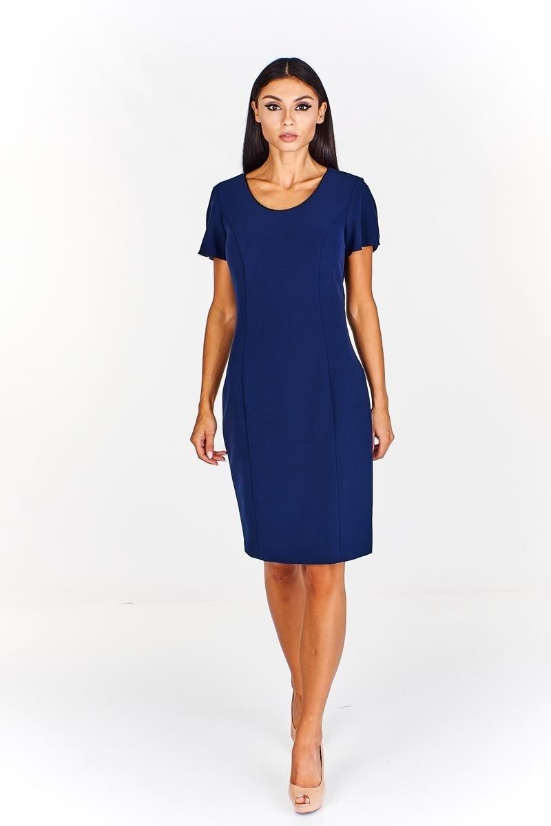 Dekolt okrągły, podkreślony wypustką. Rękaw krótki z niewielką kontrafałdą na środku. Z przodu cięcia francuskie modelujące biust oraz talię. Oryginalnie haftowane plecy, nadają wieczorowego charakteru. W rozmiarach 38-42 pod haftem jest jedynie przeźroczysty czarny tiul, w większych rozmiarach natomiast dodatkowo została podszyta podszewka w cielistym kolorze. Z tyłu na dole rozporek umożliwiający swobodne chodzenie. Suwak kryty z boku. Podszewka elastyczna. Sukienka idealna na wesele, studniówkę lub inne uroczyste spotkania. Sukieneczkę polecamy głównie młodym, odważnym dziewczynom, lubiącym wyglądać nietuzinkowo i elegancko. PRODUKT POLSKI kupując polskie marki wspierasz rozwój rodaków. Polska rośnie w siłę.