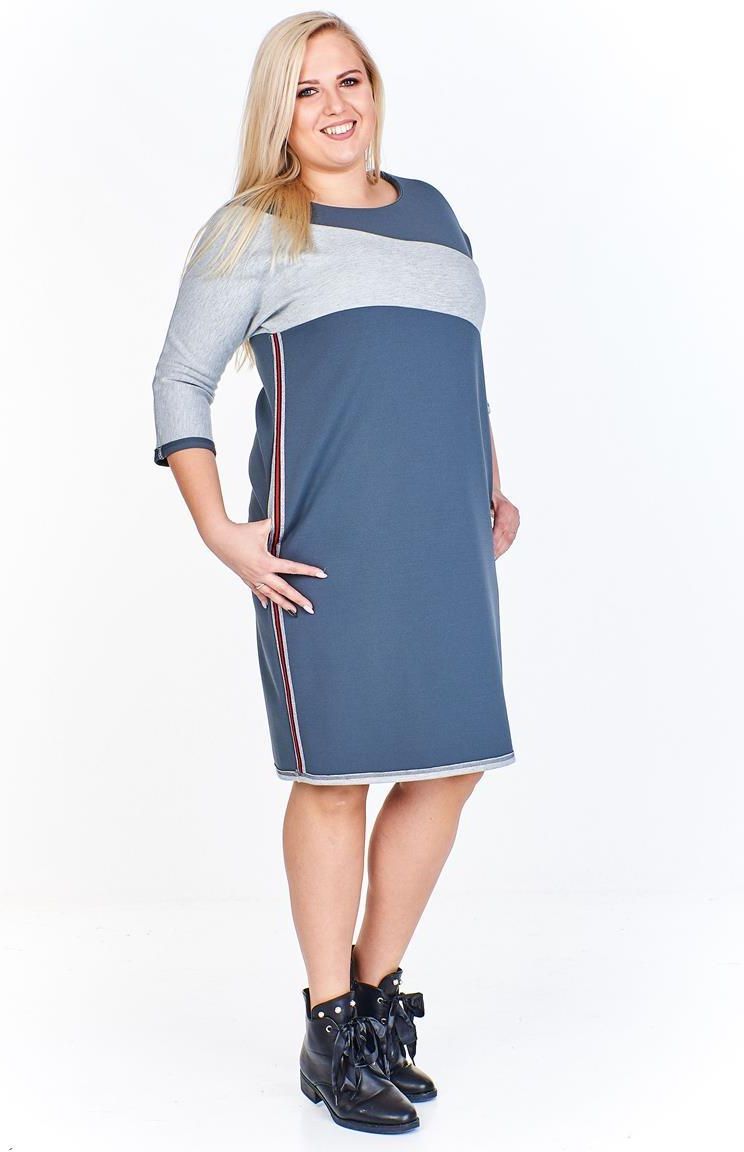 Dwukolorowa sukienka. Dekolt półokrągły. Rękaw 3/4 typu kimono. Sukienka dopasowana jest tylko w biodrach, od pasa w górę luźna. W szwach bocznych kontrastowe kieszenie, modny błyszczący lampas. Zarówno rękawy jak i dół sukienki zostały wykończone ozdobnym przeszyciem. Materiał użyty do produkcji jest dwustronny, Skład surowcowy: 50% bawełna, 45% poliester, 5% elastan. Bez podszewki. Bez suwaka. Sukienka codzienna, można ją wykorzystać zarówno w sportowych jak i bardziej szykownych stylizacjach. PRODUKT POLSKI kupując polskie marki wspierasz rozwój rodaków. Polska rośnie w siłę.